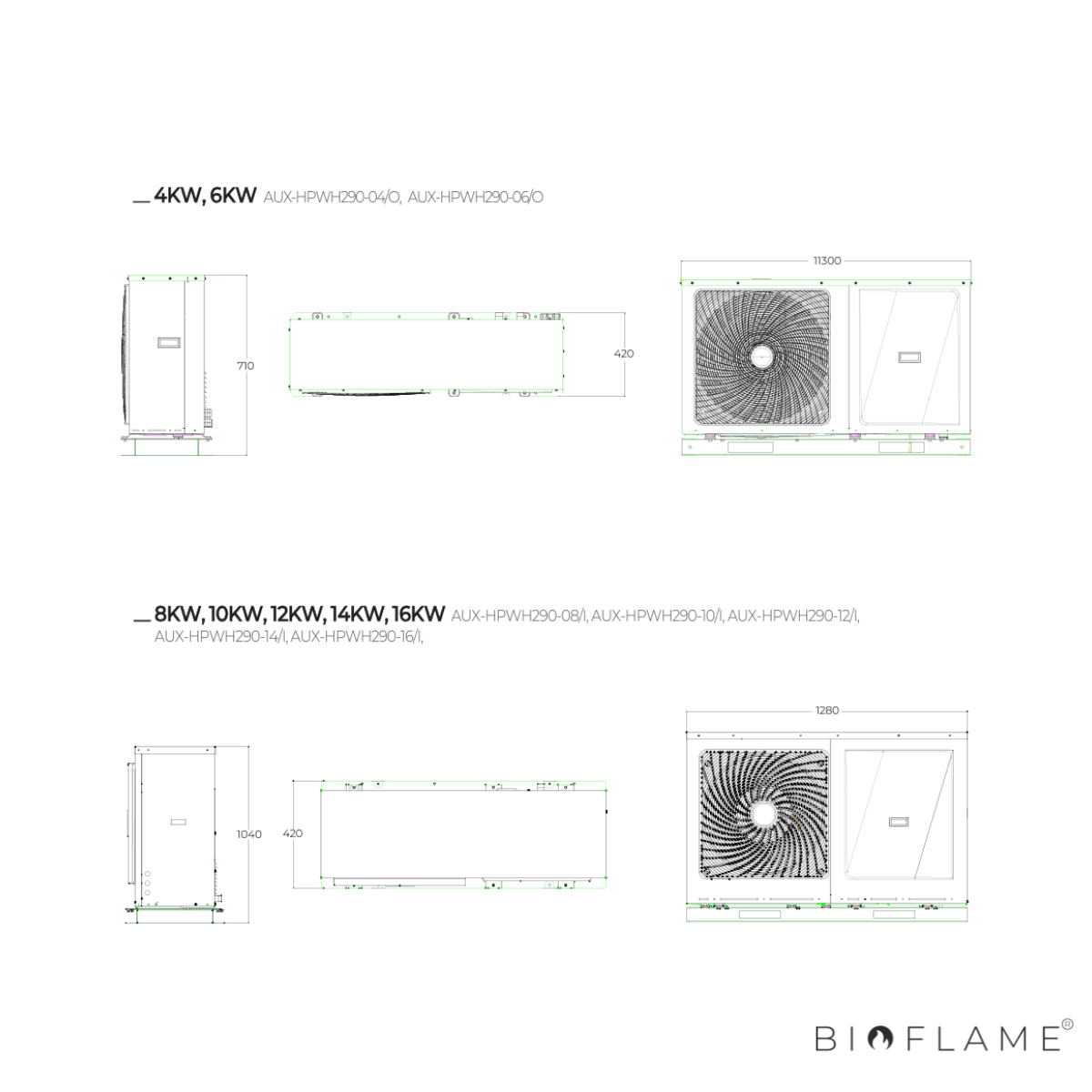 Disponível em versões 6 kW a 16 kW, monofásicas ou trifásicas, conta com compressor DC Inverter, bomba Grundfos e acabamento robusto em preto mate.
