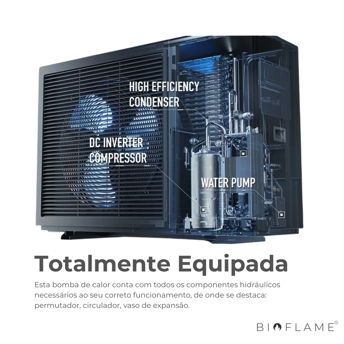 Equipada com tecnologia Full DC Inverter, compressor Toshiba GMCC e gás R290, garante elevada eficiência (COP até 4,81) mesmo em climas extremos (-25 °C).