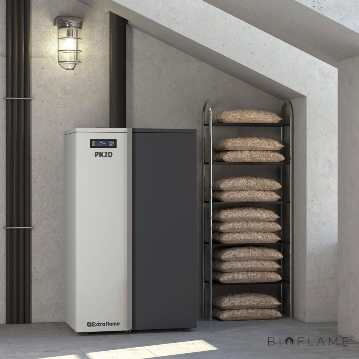 A Caldeira a Pellets PK20 oferece aquecimento potente, eficiente e sustentável, com potência até 20 kW e rendimento até 92,4%, ideal para espaços até 574 m³. Equipada com limpeza automática, braseiro autolimpante, ignição cerâmica rápida e sistema adaptativo de combustão, garante desempenho constante e baixa manutenção. O visor “Black Mask” com Wi-Fi integrado e o controlo via app Total Control 2.0 proporcionam conforto e gestão total mesmo à distância.