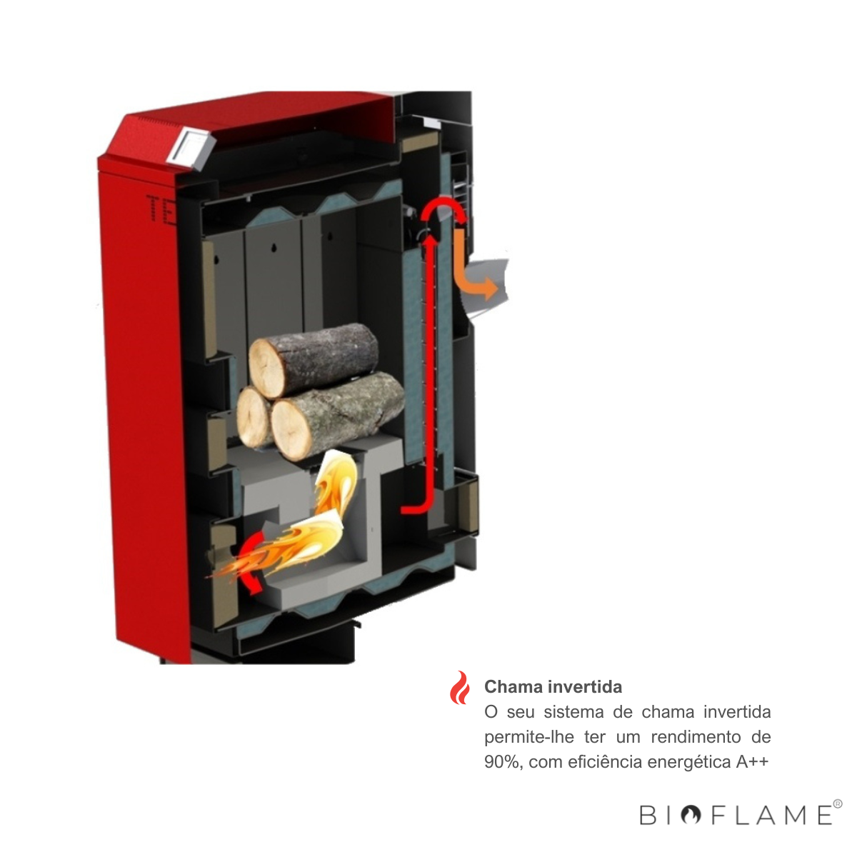Tecnologia de gaseificação (chama invertida) para alta eficiência energética (90% de rendimento);