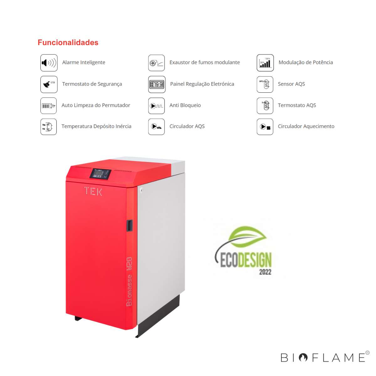 A Caldeira a Lenha Tek Biomasse W combina eficiência, sustentabilidade e simplicidade de utilização, sendo a solução ideal para o aquecimento central e produção de águas quentes sanitárias. Através da tecnologia de gaseificação e chama invertida, a lenha é queimada em duas fases, o que permite um aproveitamento máximo do combustível, com rendimento até 90%, menor consumo de lenha e significativa redução de fumo e resíduos.