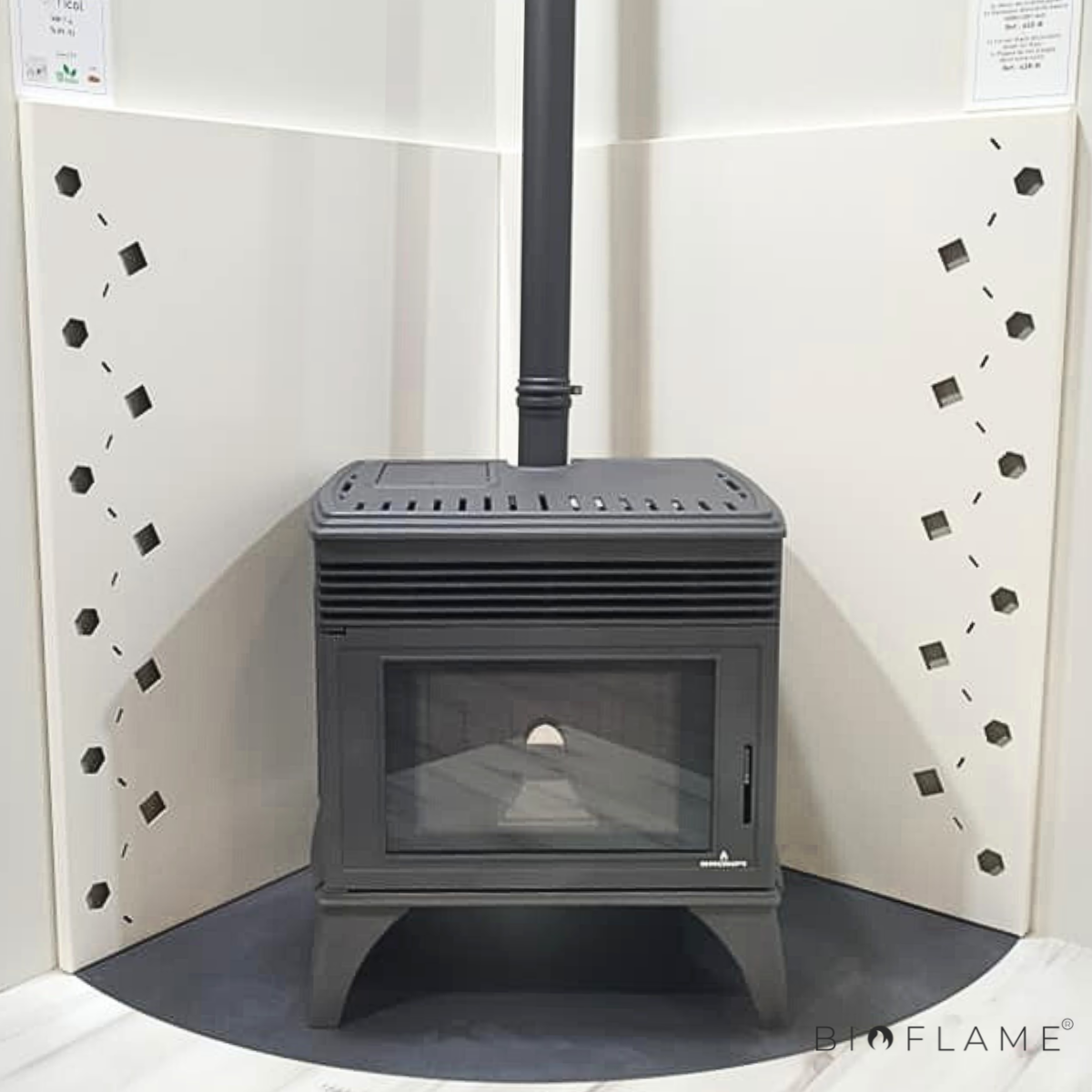 Dê um toque de elegância e proteção ao redor da sua salamandra a pellets ou lenha com esta chapa decorativa da Bronpi.
