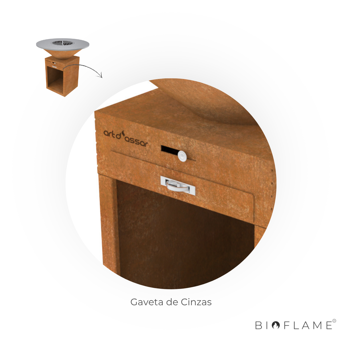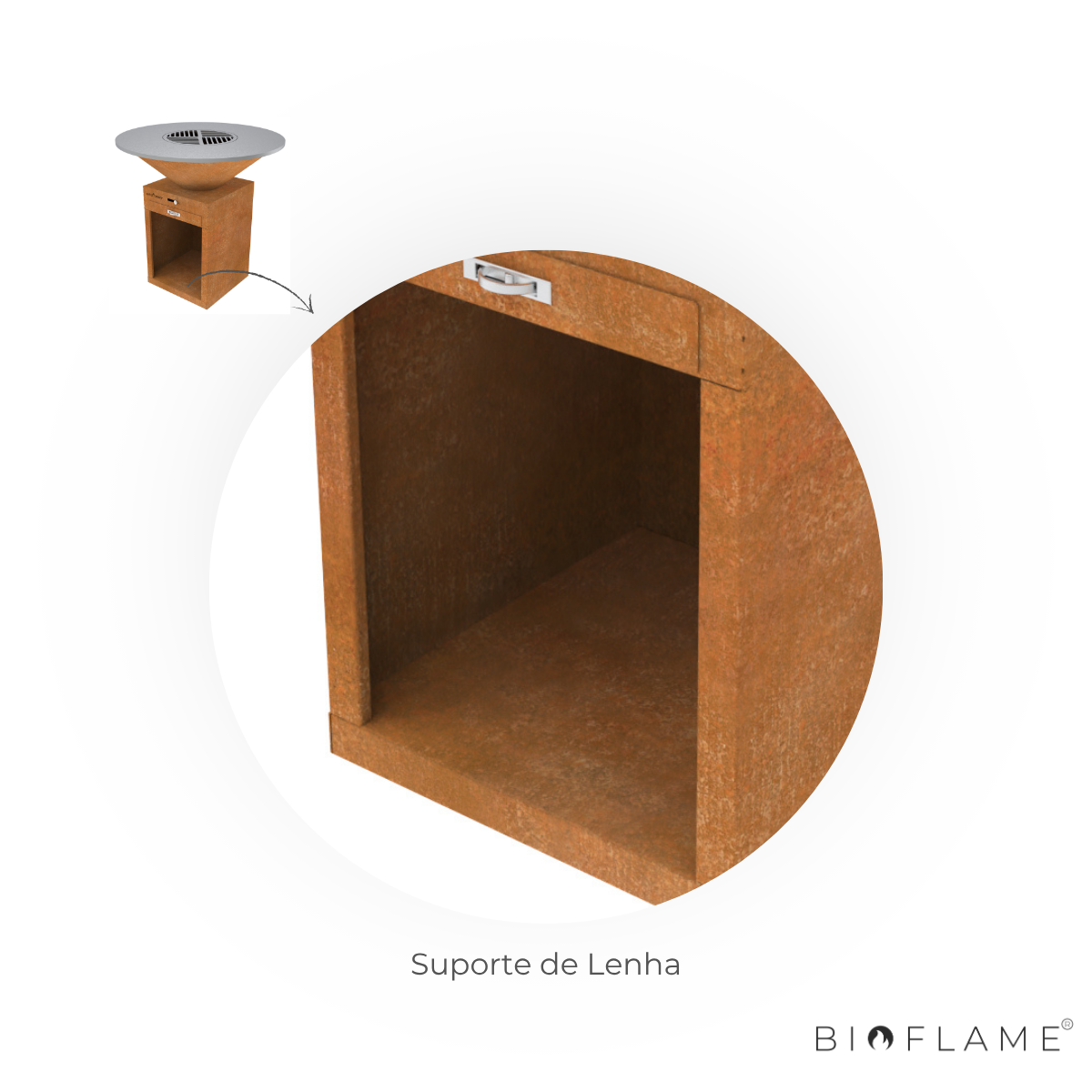 Corpo em aço corten 2mm, resistente e durável;