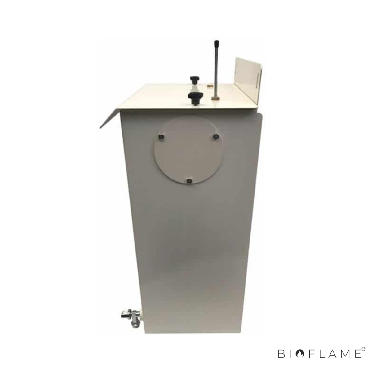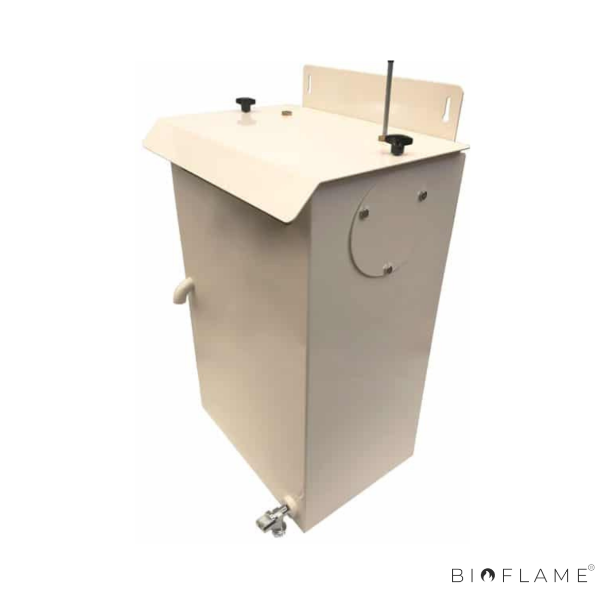 Os fumos quentes passam pelo filtro e entram em contacto com a água, onde as impurezas e sedimentos se depositam. O resultado? Fumos limpos que saem brancos, com menor poluição e uma queima mais eficiente. O filtro é fácil de limpar: basta abrir a válvula de drenagem, esvaziar, limpar e reabastecer com água.