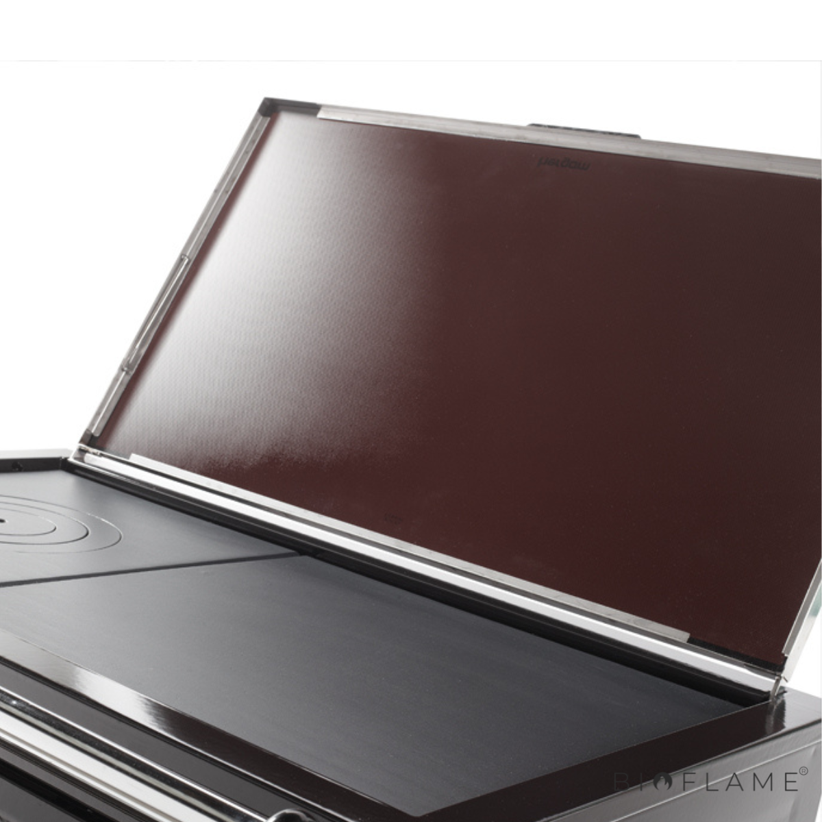 - Características: Placa em ferro fundido polido ou Placa em ferro fundido polido e vitrocerâmica.