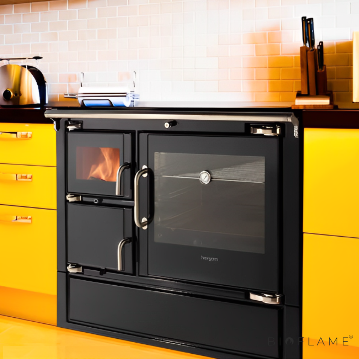 O fogão a lenha para aquecimento central Eclecsys 100 CC em ferro fundido, com dupla combustão, alto rendimento (83%) e baixas emissões. Design moderno com forno e porta acristalados, ideal para cozinhar e aquecimento central graças ao depósito de água integrado. Fácil de usar e manter, é uma solução premium para quem valoriza qualidade, eficiência e conforto.