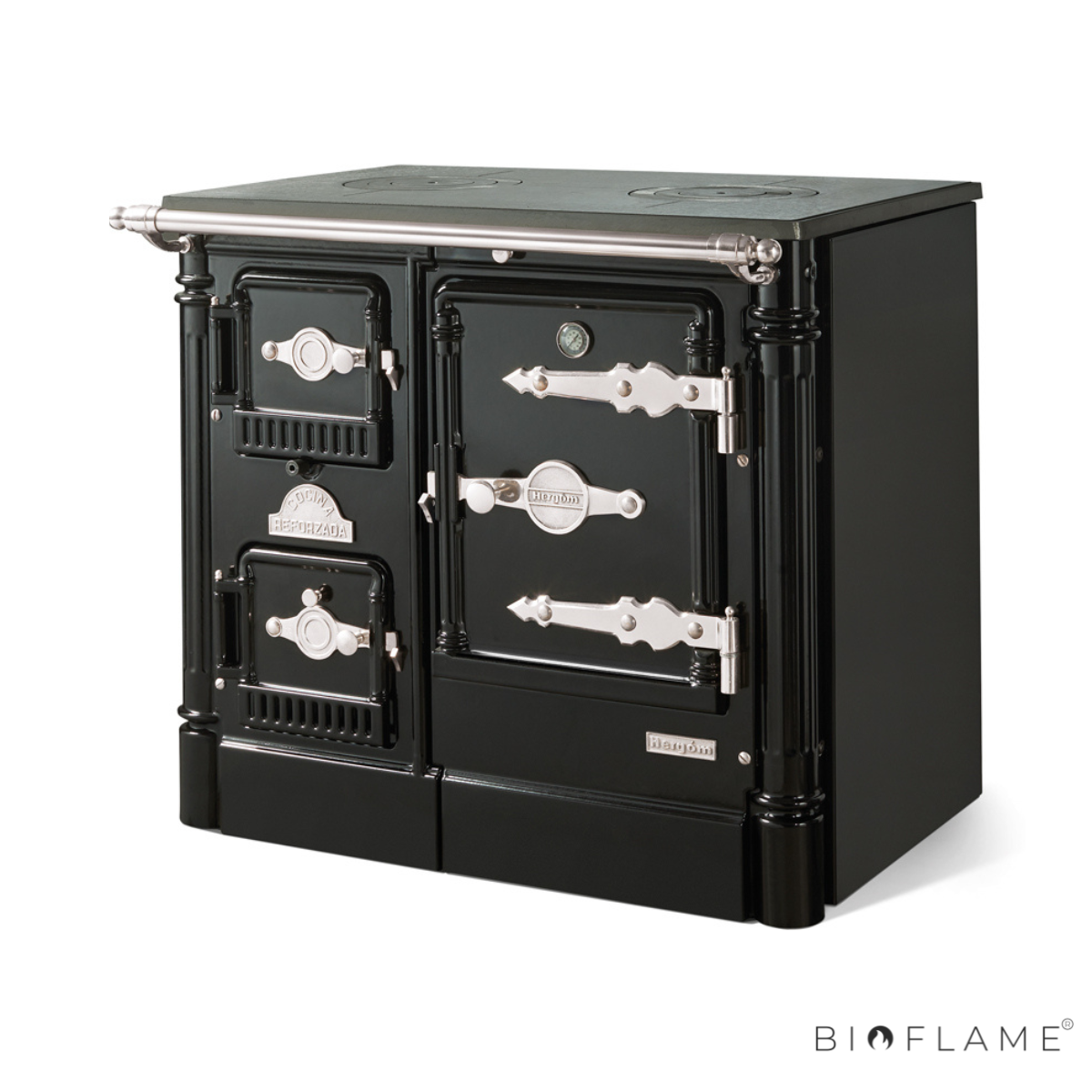 O fogão a lenha para aquecimento central em ferro fundido L 07/90 CH, com corpo em fundição robusta e acabamento latonado ou cromado, pode ser embutido numa lareira antiga ou instalado em pladur, adaptando-se facilmente a uma cozinha moderna. Ideal para cozinhar com eficiência, também permite ligação ao aquecimento central com radiadores e água. Disponível com placa polida ou placa polida e vitrocerâmica, alia tradição, versatilidade e um excelente preço.