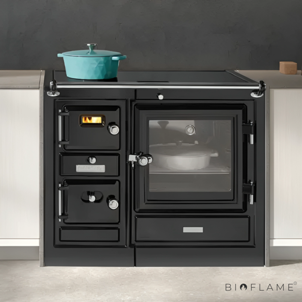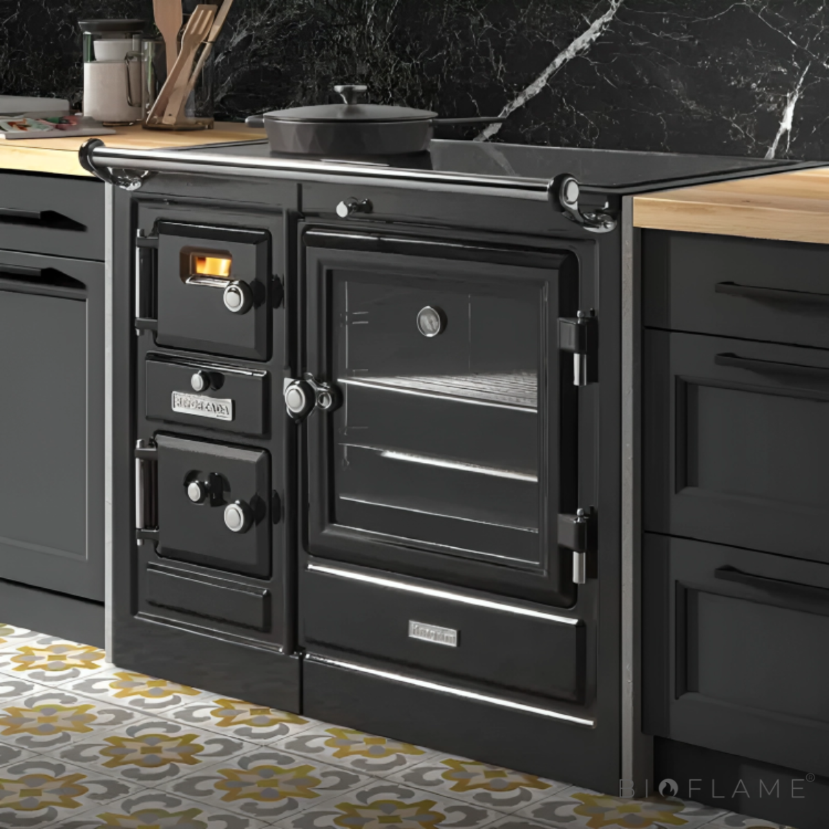 O fogão a lenha Saja é um fogão a lenha em ferro fundido com acabamento esmaltado, disponível com placa polida ou combinação de placa polida e vitrocerâmica, oferecendo excelente transferência de calor para cozinhar com eficiência. Com forno em aço inoxidável e certificação energética A+, alia funcionalidade, facilidade de manutenção e baixo impacto ambiental. Uma solução premium para quem procura qualidade, conforto e bom preço na cozinha.