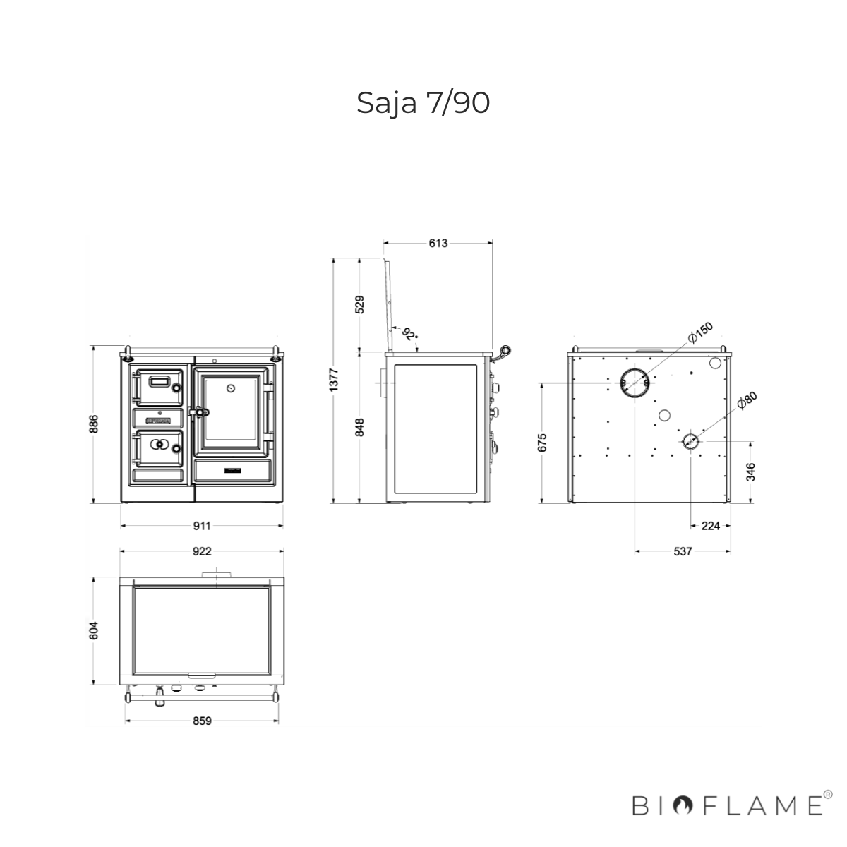 - Dimensões Saja 7/90 (L x A x P): 920 x 850 x 604 mm