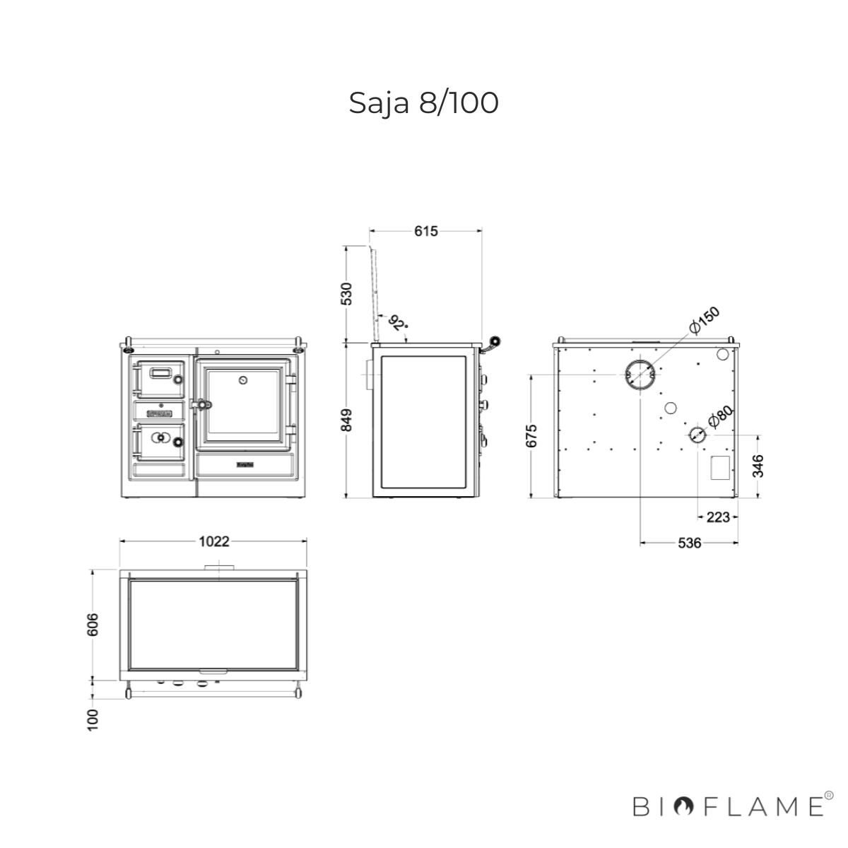 - Dimensões Saja 8/100 (L x A x P): 1020 x 850 x 604 mm