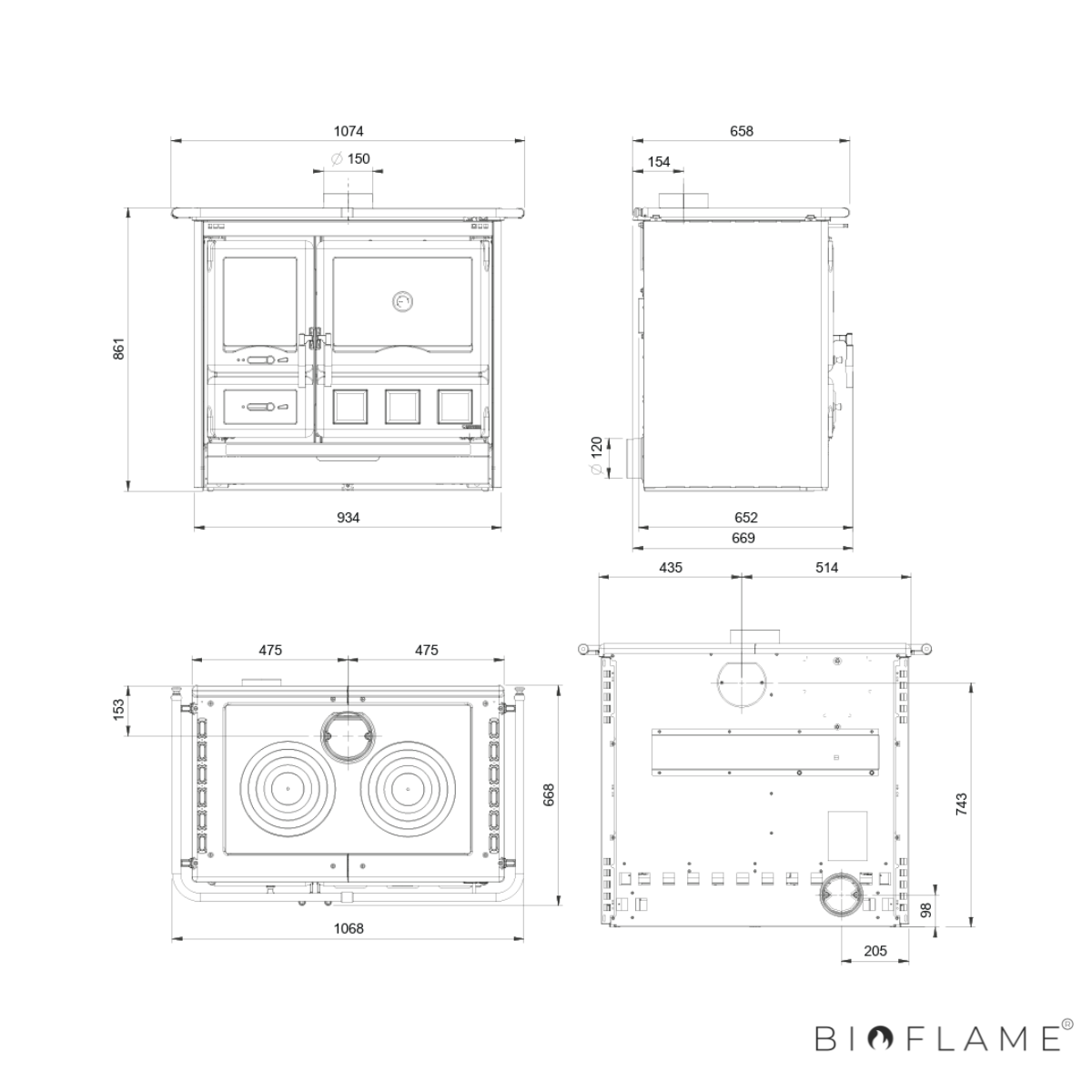 - Diâmetro Saída Fumo: 150 mm