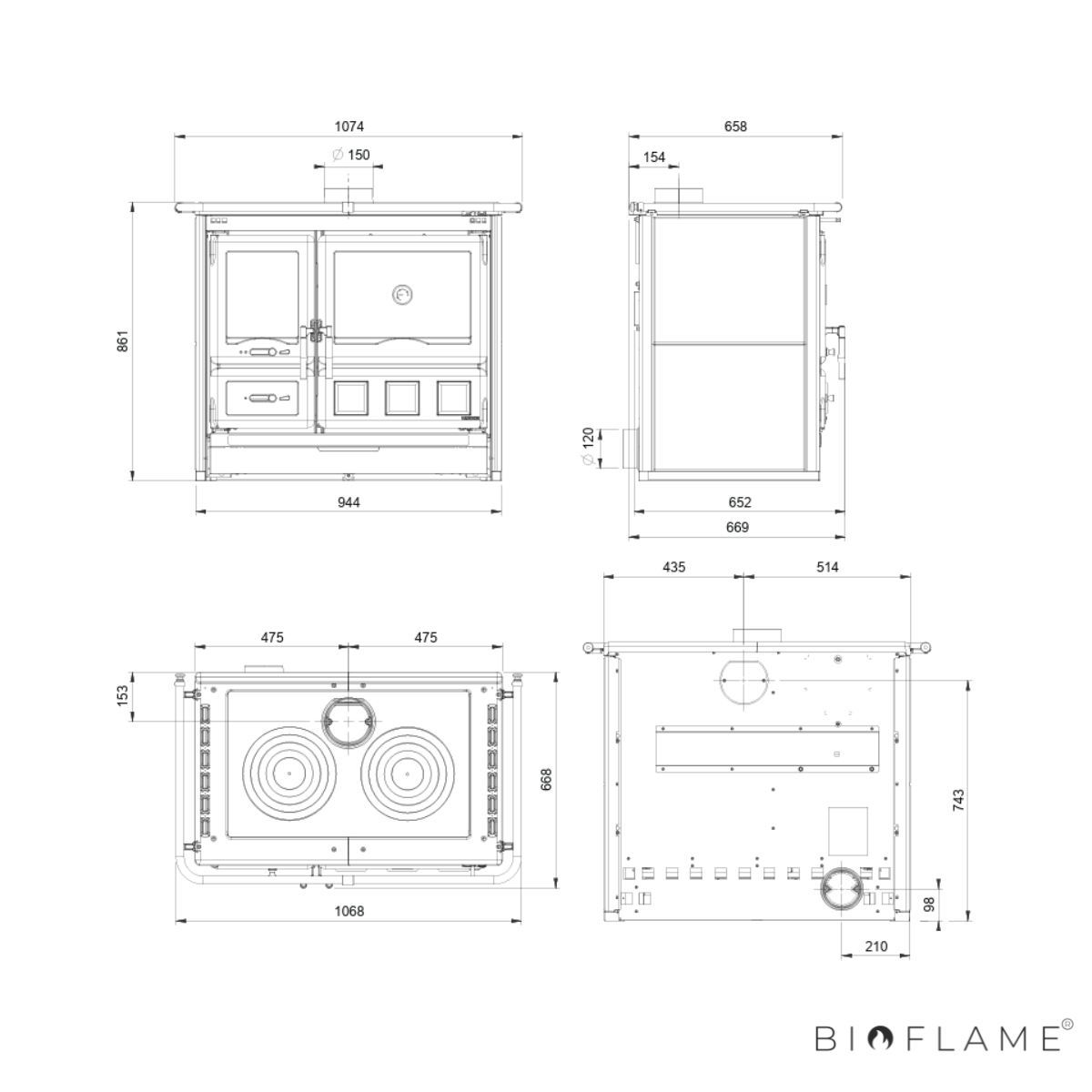 - Opcional: Grelha do forno cromada, Bandeja esmaltada, kit de grelha móvel e anel de ar exterior 120 mm