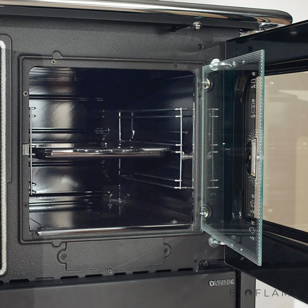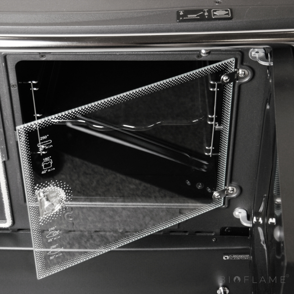 - Características: Sistema de vidro limpo, Pós-Combustão, Bandeja esmaltada