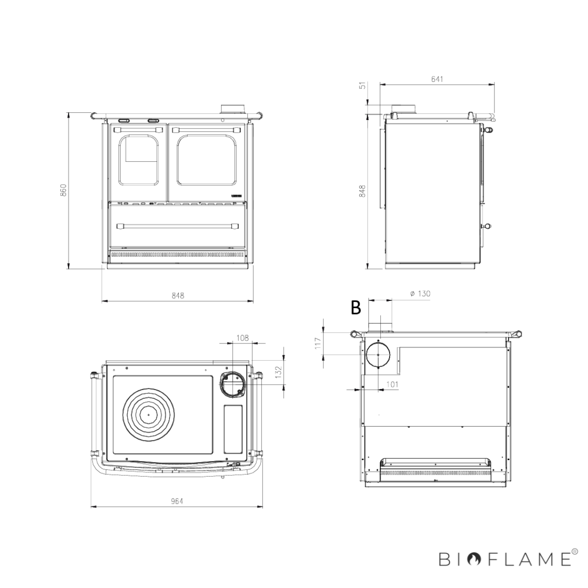 - Diâmetro Saída Fumo: 130 mm
