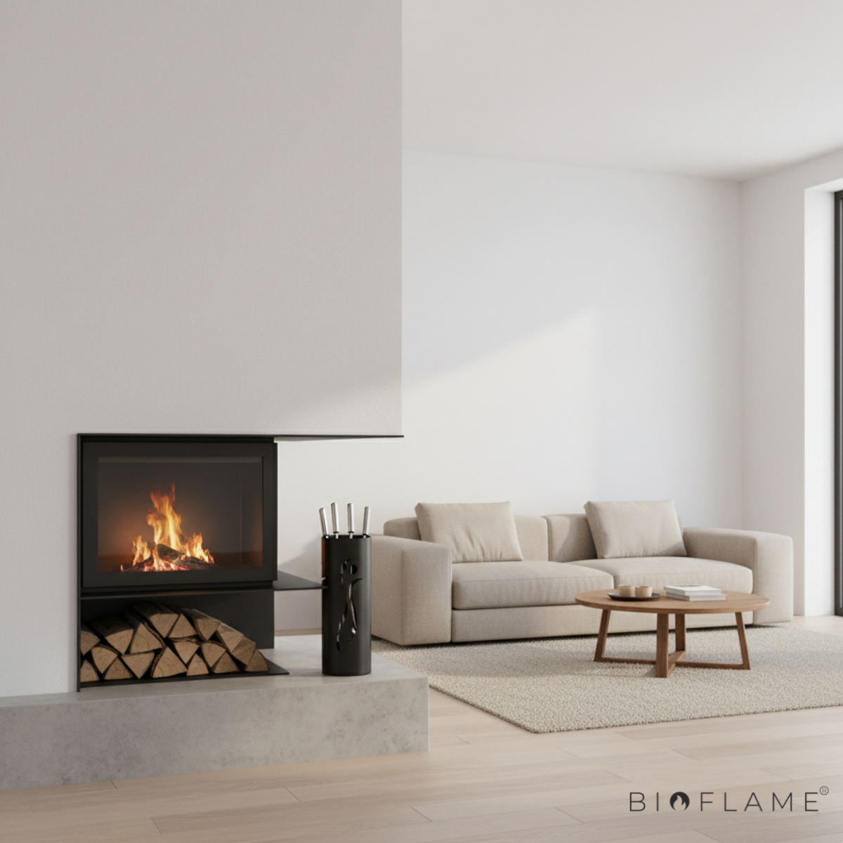 Conjunto de utensílios para recuperadores a lenha, composto por atiçador, pinça, pá e vassoura, indispensáveis para cuidar da lareira. Fabricados em metal resistente ao calor, garantem durabilidade e segurança no manuseamento do fogo. A pá e a vassoura permitem uma limpeza rápida das cinzas, enquanto o atiçador e a pinça facilitam o ajuste da lenha. Inclui suporte prático para manter tudo organizado e sempre à mão. Uma solução elegante e funcional para qualquer espaço com recuperador ou salamandra.