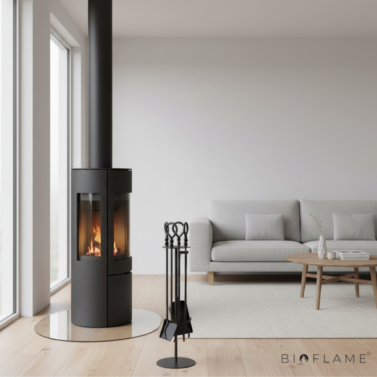 Jogo de utensílios para recuperadores e salamandras, composto por atiçador, pinça, pá e vassoura, indispensável para manter o fogo seguro e organizado. Confeccionados em metal resistente ao calor, garantem durabilidade e segurança durante o uso. A pá e a vassoura permitem retirar as cinzas de forma rápida, enquanto o atiçador e a pinça facilitam o manuseamento da lenha. Inclui suporte prático que mantém todos os utensílios sempre ao alcance e bem arrumados. Uma solução funcional e elegante para qualquer espaço com lareira ou salamandra.