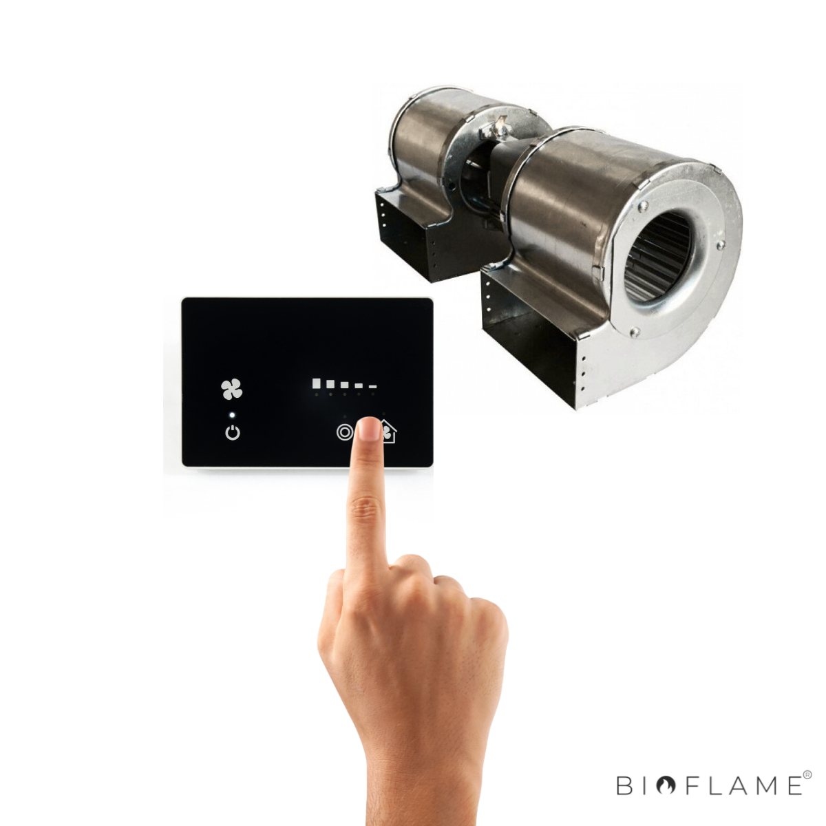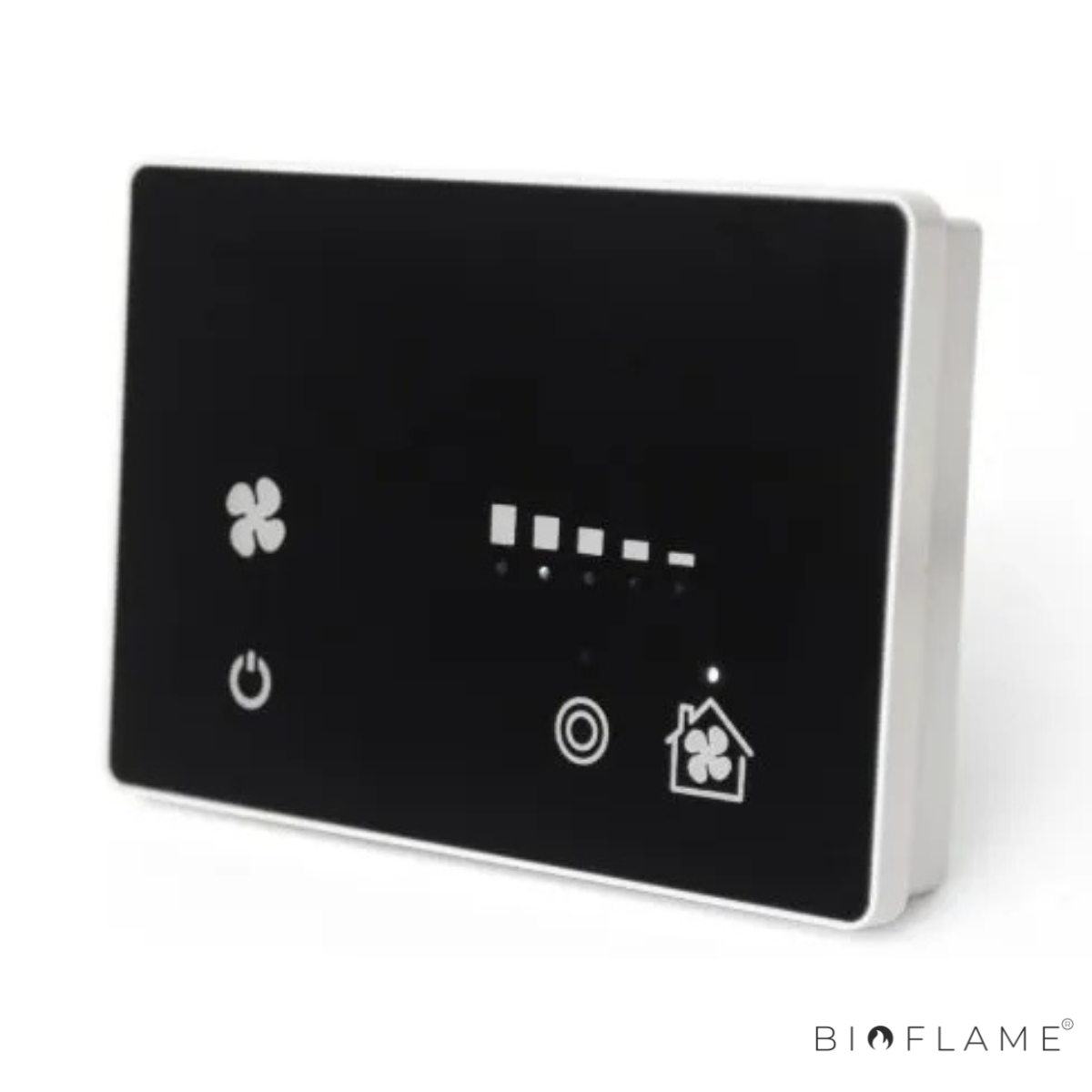 O kit inclui um ecrã tátil em preto, com regulador electrónico de cinco velocidades, permitindo controlar facilmente o fluxo de ar. Funciona em modo automático, ativando-se quando o recuperador atinge a temperatura desejada, ou em modo manual, adaptando-se às suas necessidades.