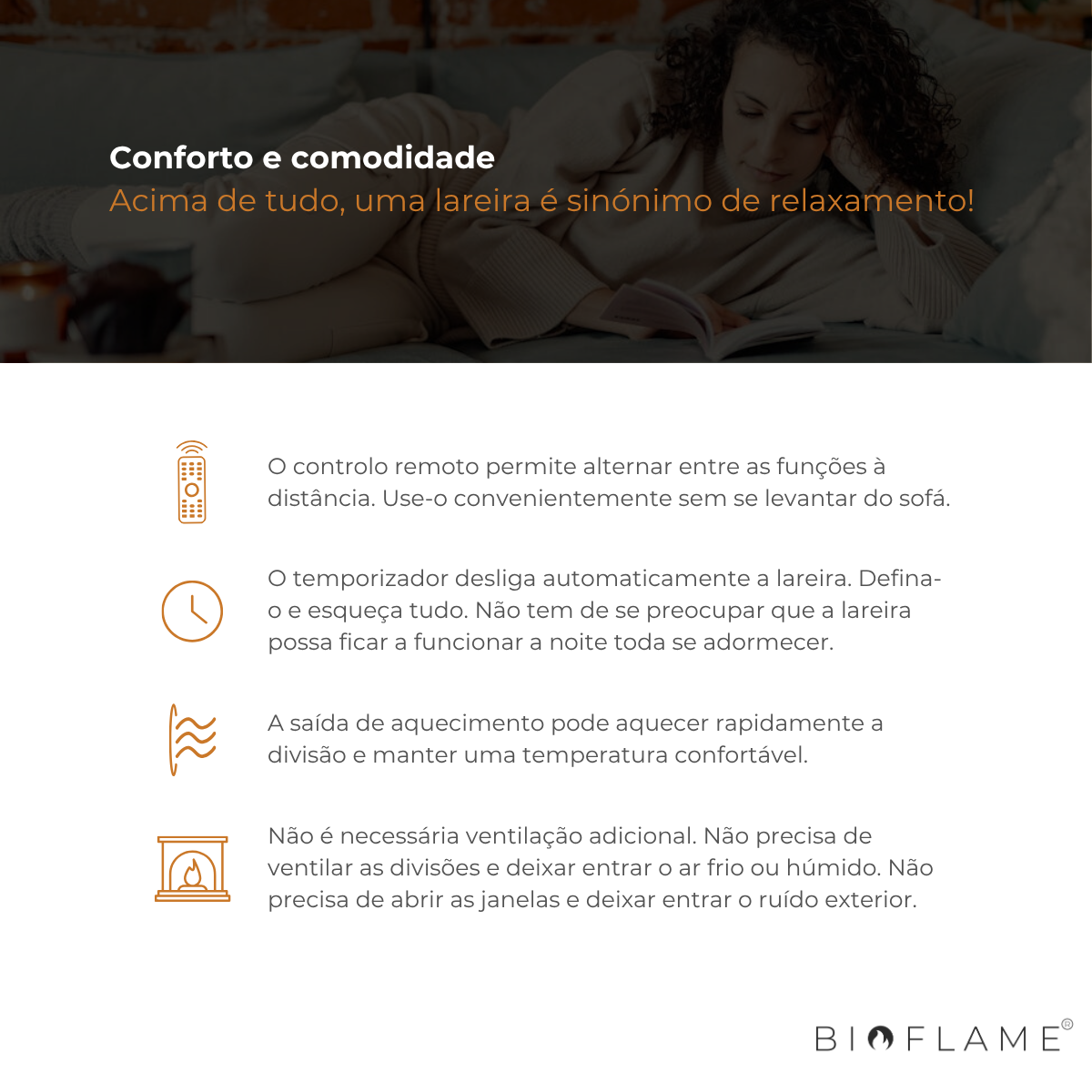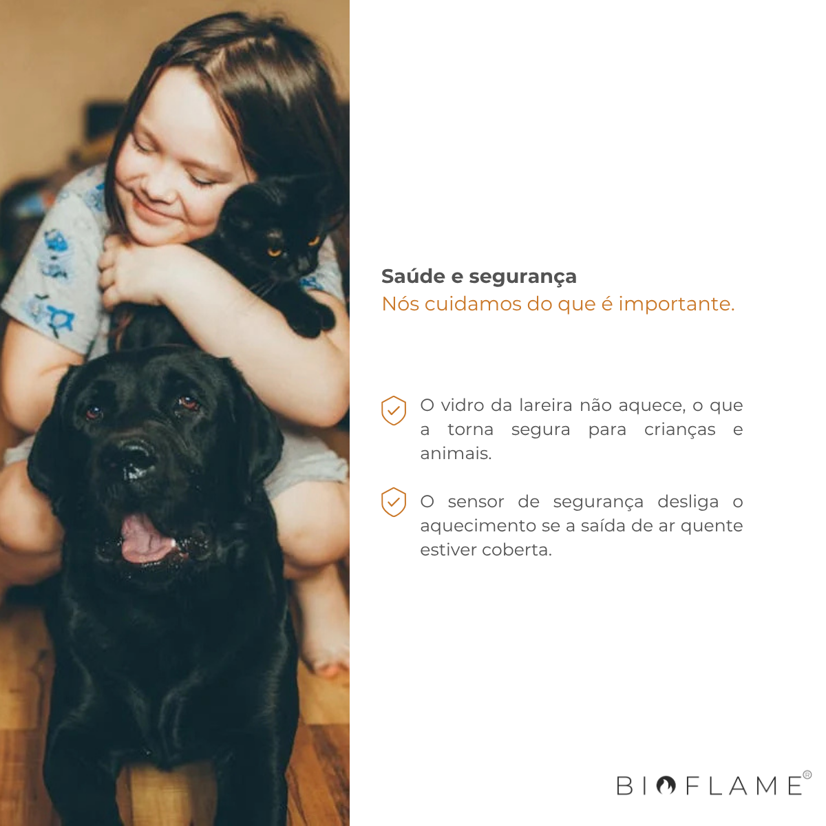 A lareira elétrica AFLAMO combina design moderno, tecnologia avançada e um ambiente acolhedor, oferecendo o máximo conforto sem as complicações das lareiras tradicionais. Com instalação fácil e rápida, é perfeita para apartamentos, salas, quartos ou espaços comerciais, sem necessidade de ventilação ou obras complexas.