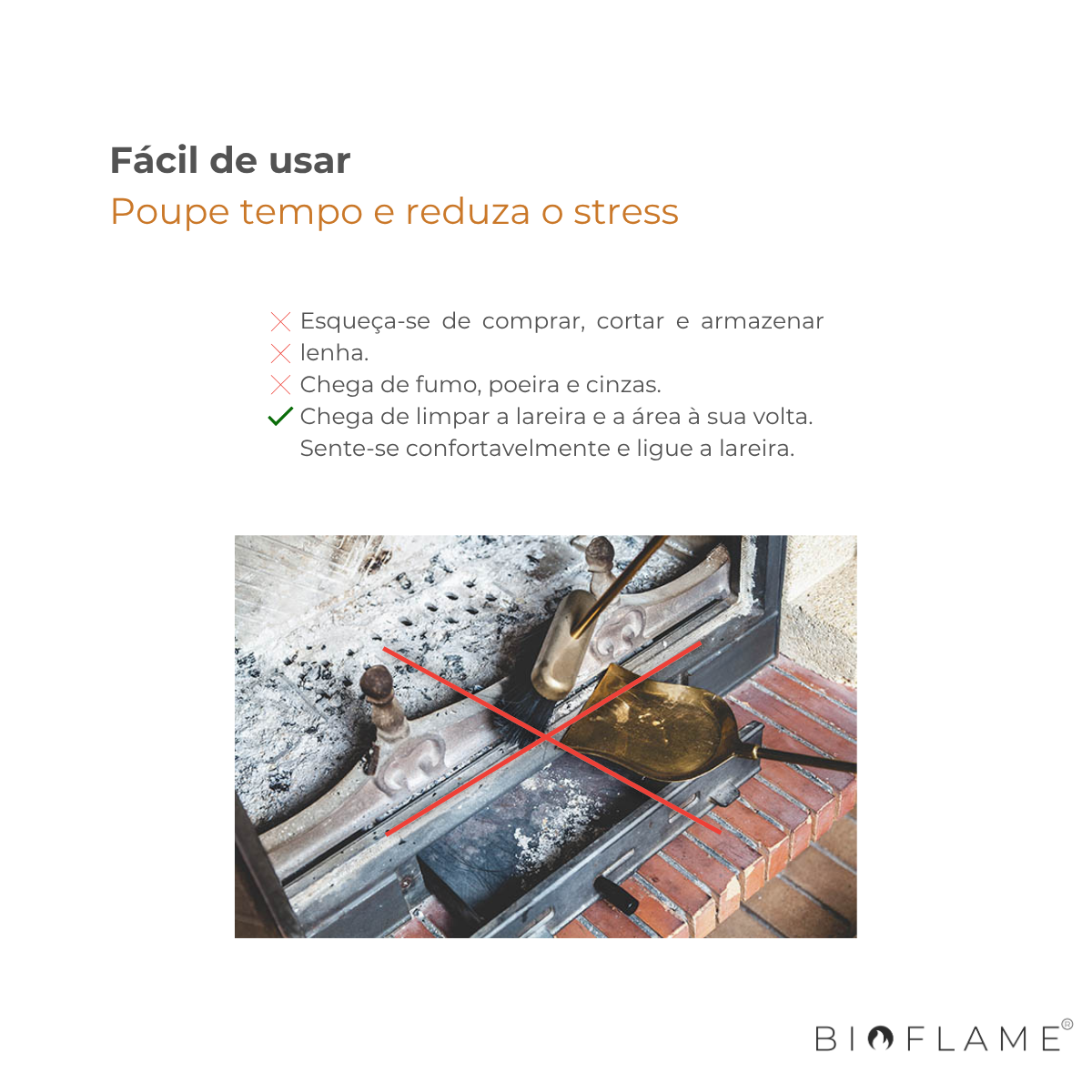 Dispensa a necessidade de comprar, cortar ou armazenar lenha