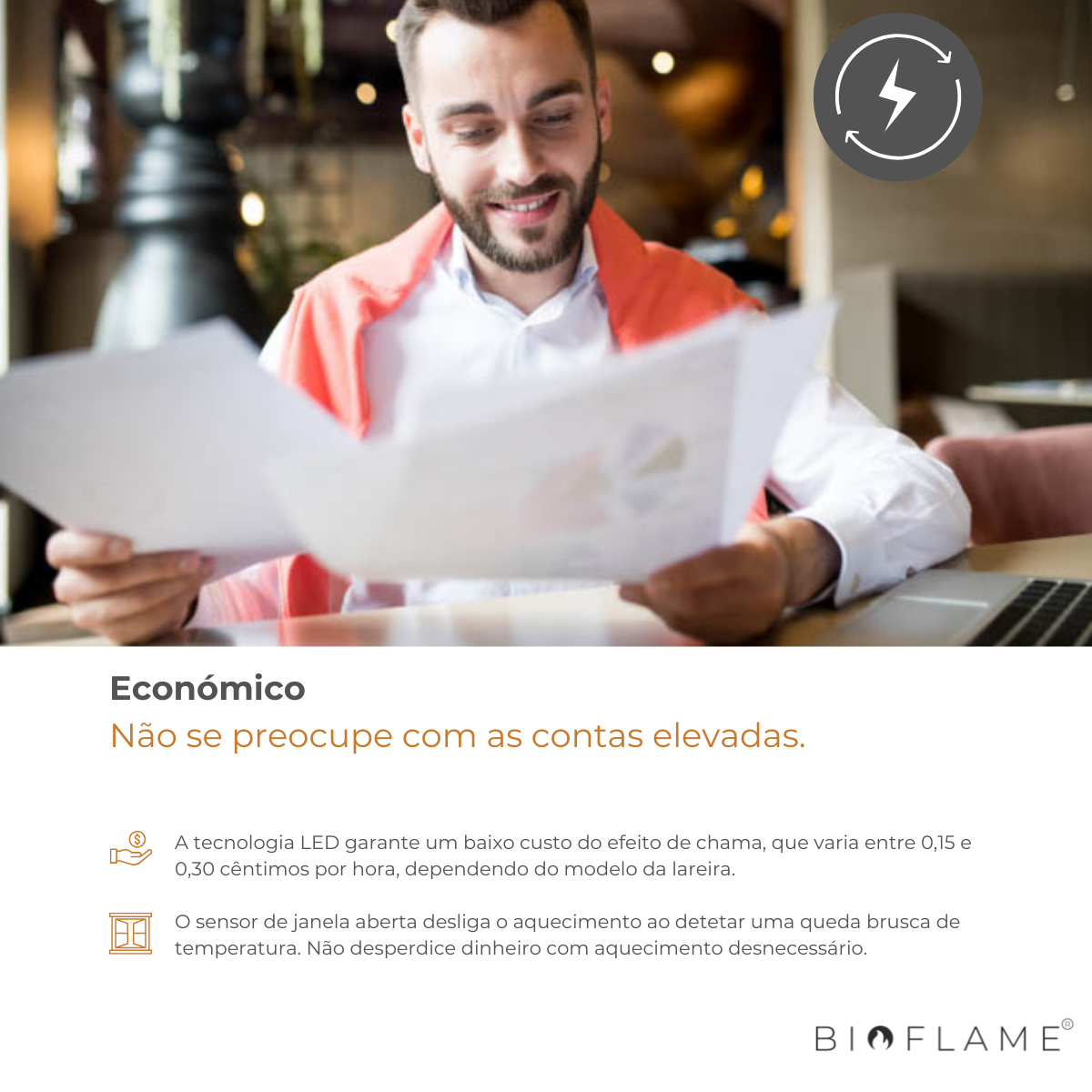 Com a AFLAMO, desfrute do aconchego de uma lareira com o máximo de segurança, eficiência e elegância — tudo isso sem complicações e com controlo total na palma da sua mão.