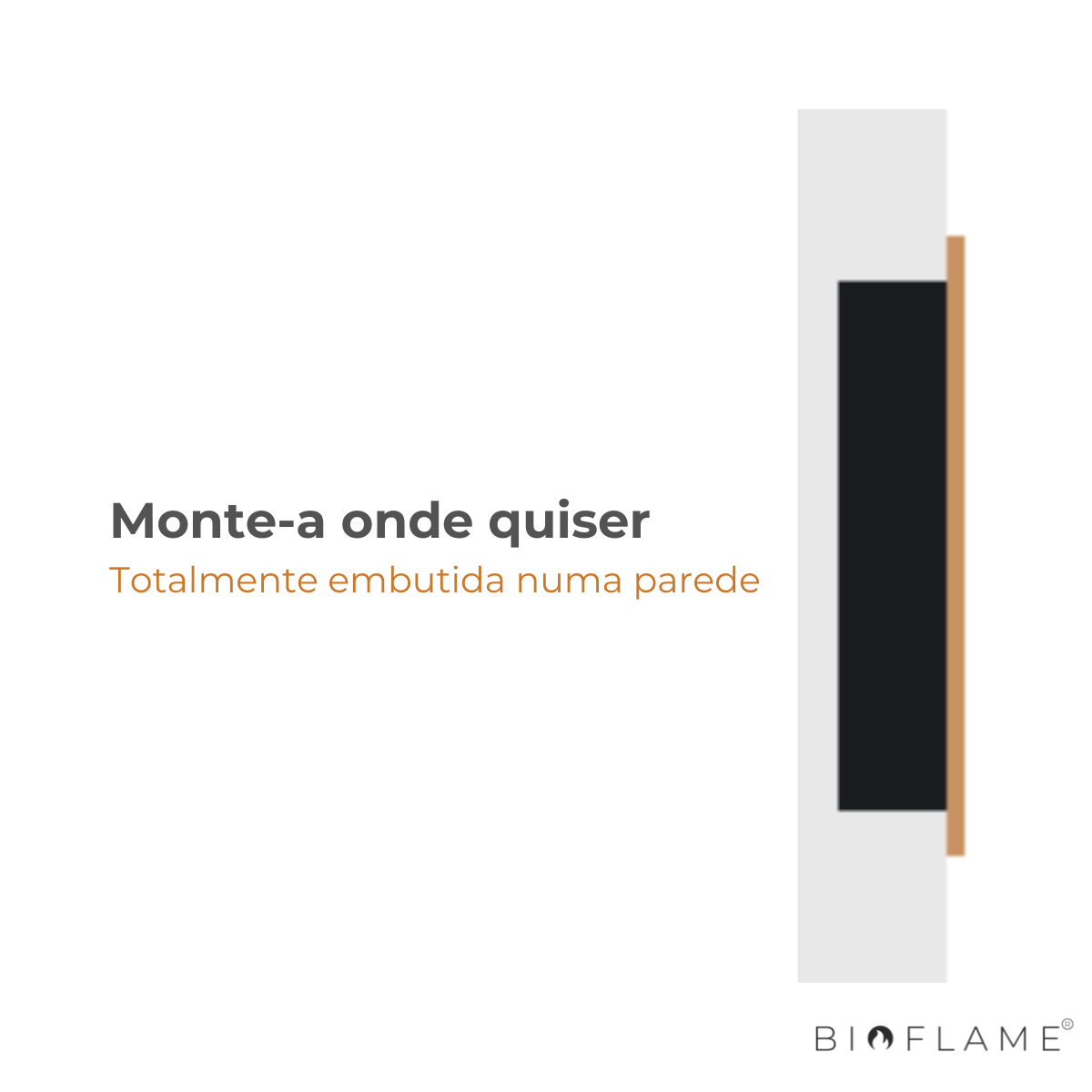 Moldura destacável, permitindo embutir totalmente a lareira na parede para um visual sem moldura