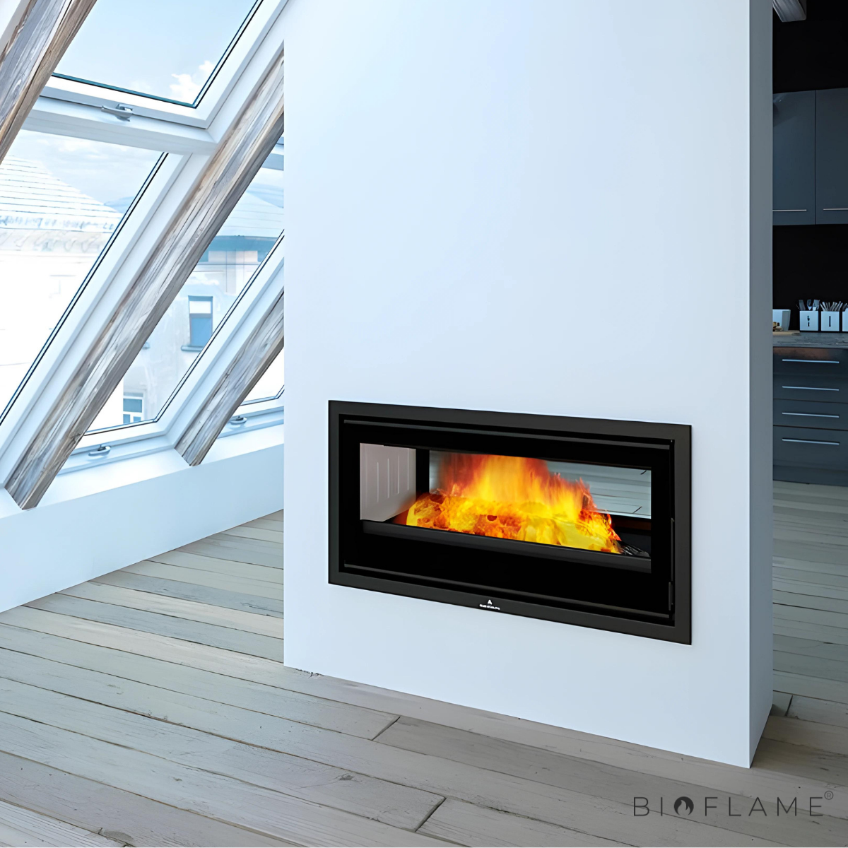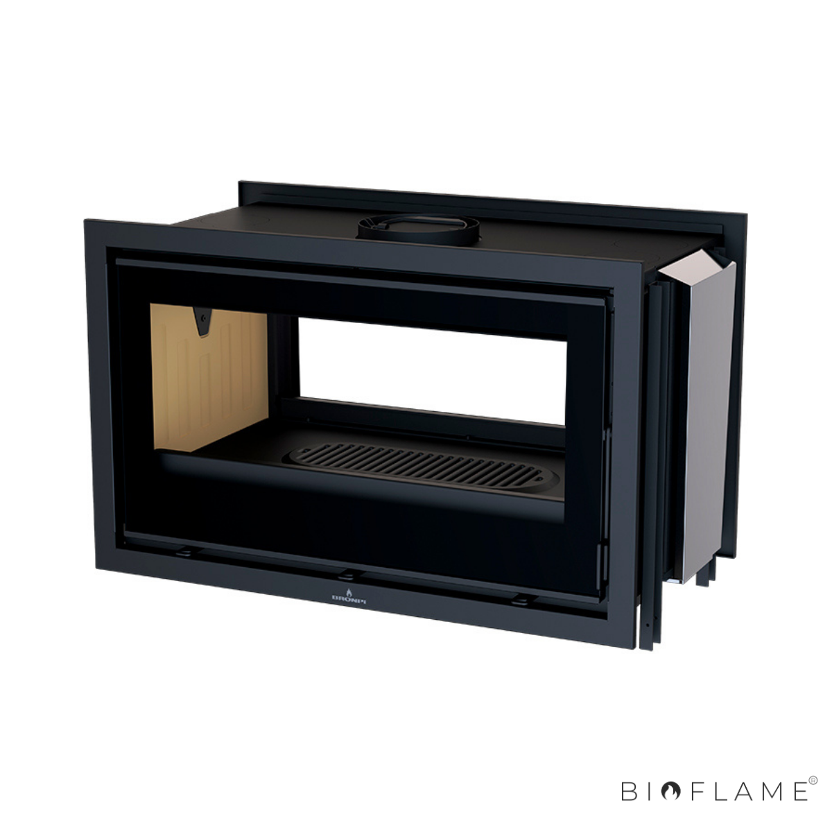 O recuperador de calor a lenha Cairo 100 D, fabricado em ferro fundido e aço, oferece alta eficiência com sistema de tripla combustão, rendimento de 82% e potência até 19 kW para aquecimento até 375 m³. Ideal para quem procura uma lareira moderna, permite encastrar ou embutir na lareira antiga ou em pladur. Com interior em vermiculite ou cerâmica, grelha e gaveta de cinzas extraíveis, facilitam a manutenção. Uma solução premium em ofertas com design sofisticado e preço competitivo.