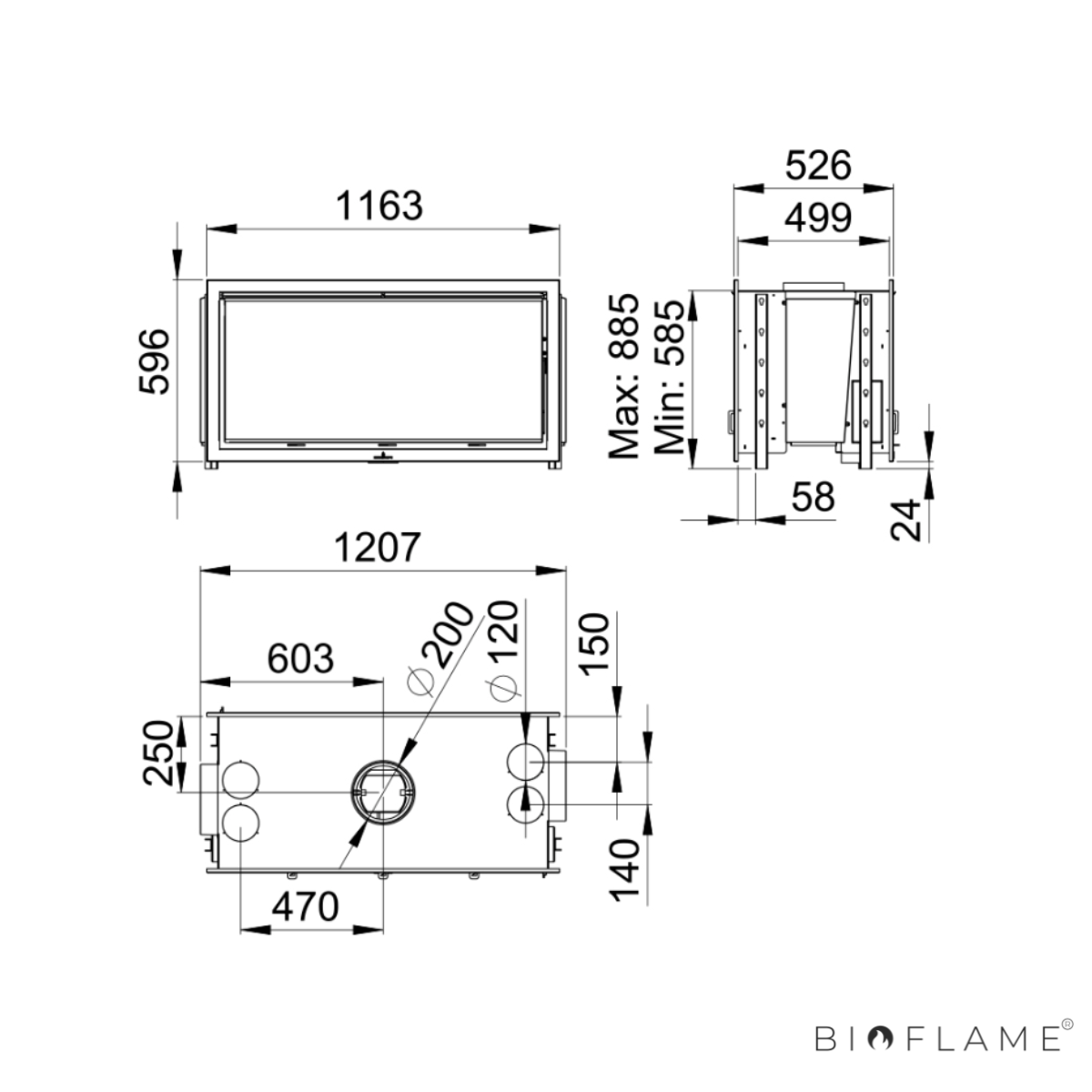 - Dimensões (C x A x P): 1163 x 596 x 526 mm