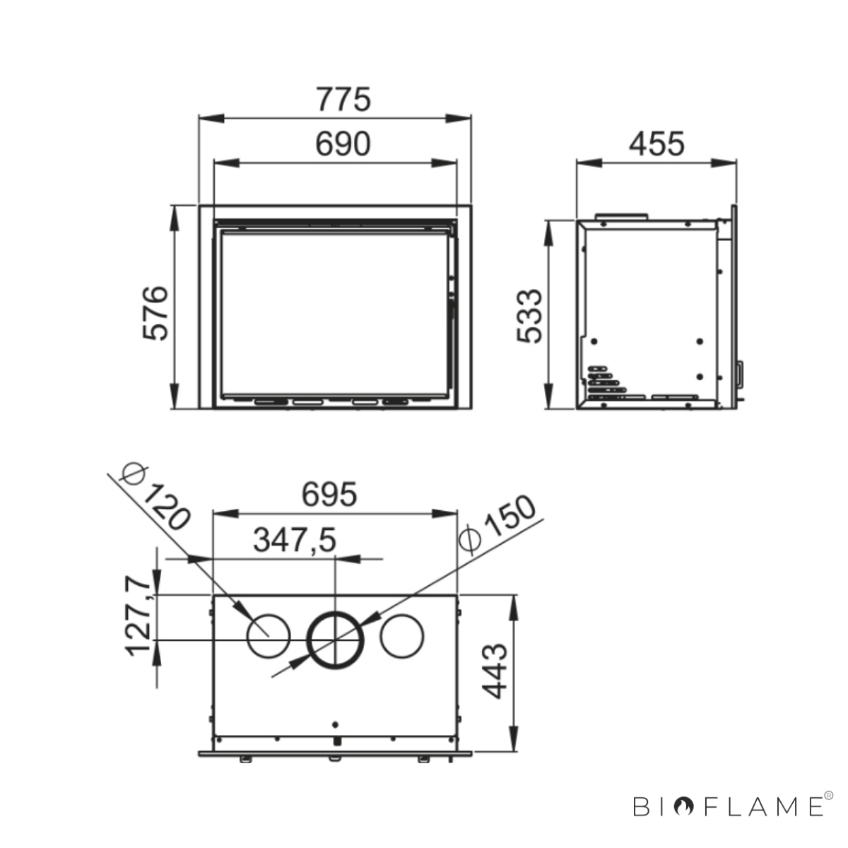 - Diâmetro Saída Fumo: 150 mm