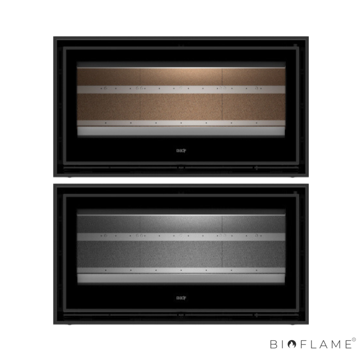 O recuperador ADF Clare 100S oferece duas opções de revestimento interior: vermiculite (foto abaixo à esquerda), que garante bom isolamento térmico e durabilidade; e Therm H‑HD Grey (foto abaixo à direita), que apresenta a mesma funcionalidade do vermiculite, mas com uma estética mais moderna e maior dureza, conferindo ainda mais durabilidade ao equipamento.
