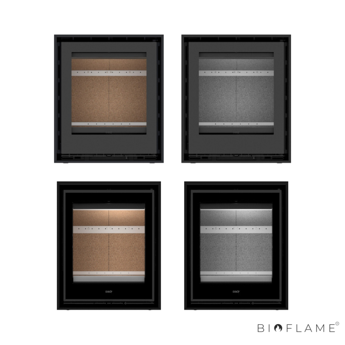 O recuperador ADF Clare 60 Vt oferece duas opções de revestimento interior: vermiculite (foto abaixo à esquerda), que garante bom isolamento térmico e durabilidade; e Therm H‑HD Grey (foto abaixo à direita), que apresenta a mesma funcionalidade do vermiculite, mas com uma estética mais moderna e maior dureza, conferindo ainda mais durabilidade ao equipamento.