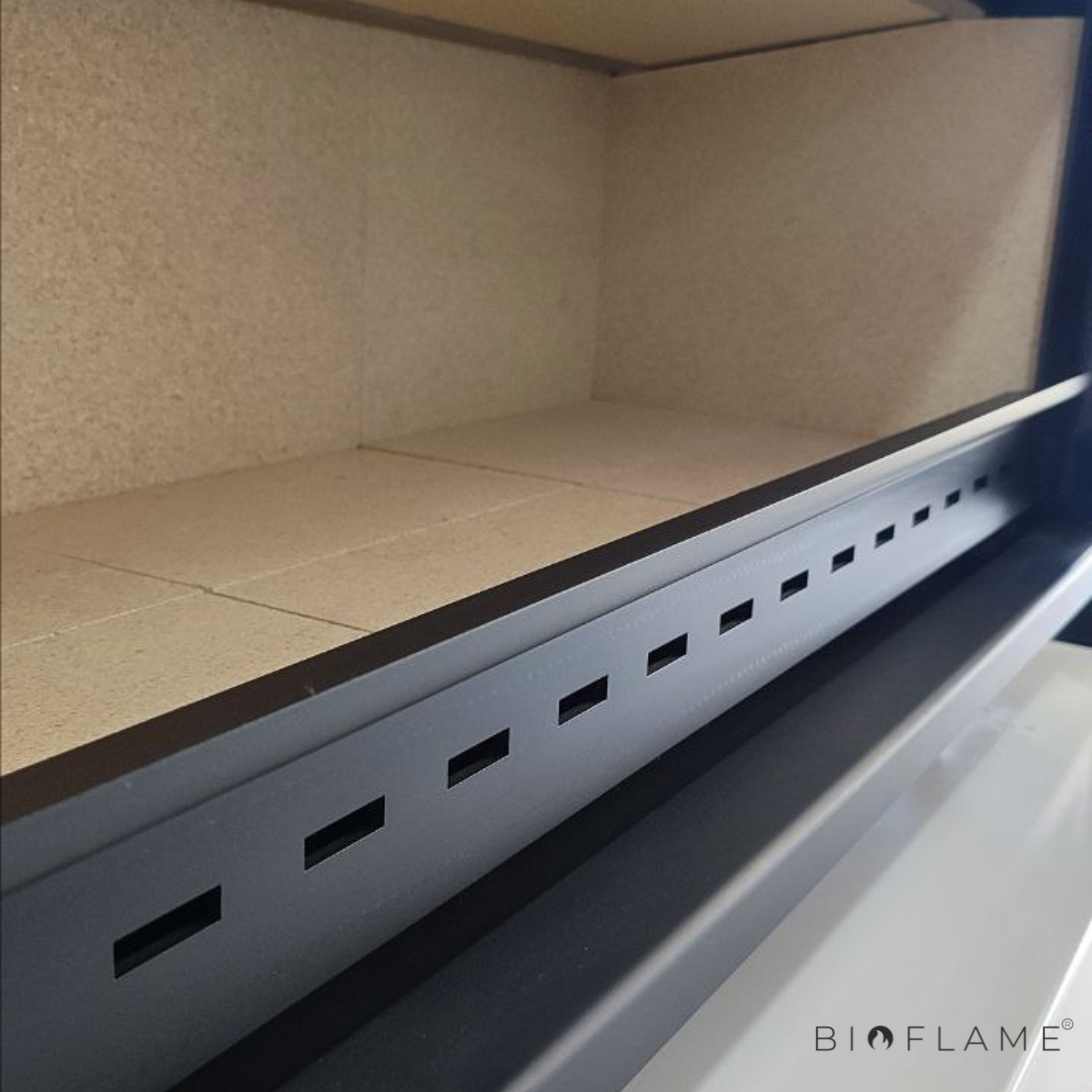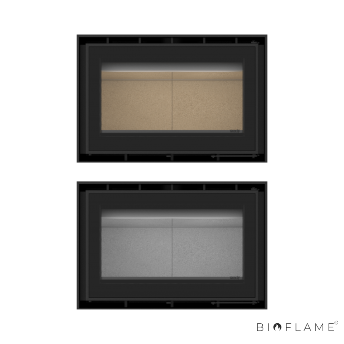 O recuperador ADF Linea 70S oferece duas opções de revestimento interior: vermiculite (foto abaixo à esquerda), que garante bom isolamento térmico e durabilidade; e Therm H‑HD Grey (foto abaixo à direita), que apresenta a mesma funcionalidade do vermiculite, mas com uma estética mais moderna e maior dureza, conferindo ainda mais durabilidade ao equipamento.