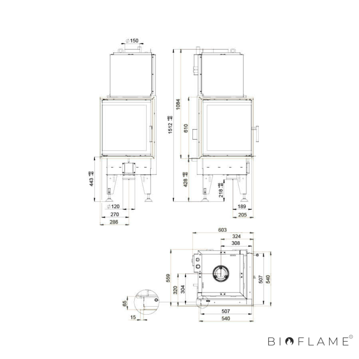 - Diâmetro Saída Fumo: 150 mm