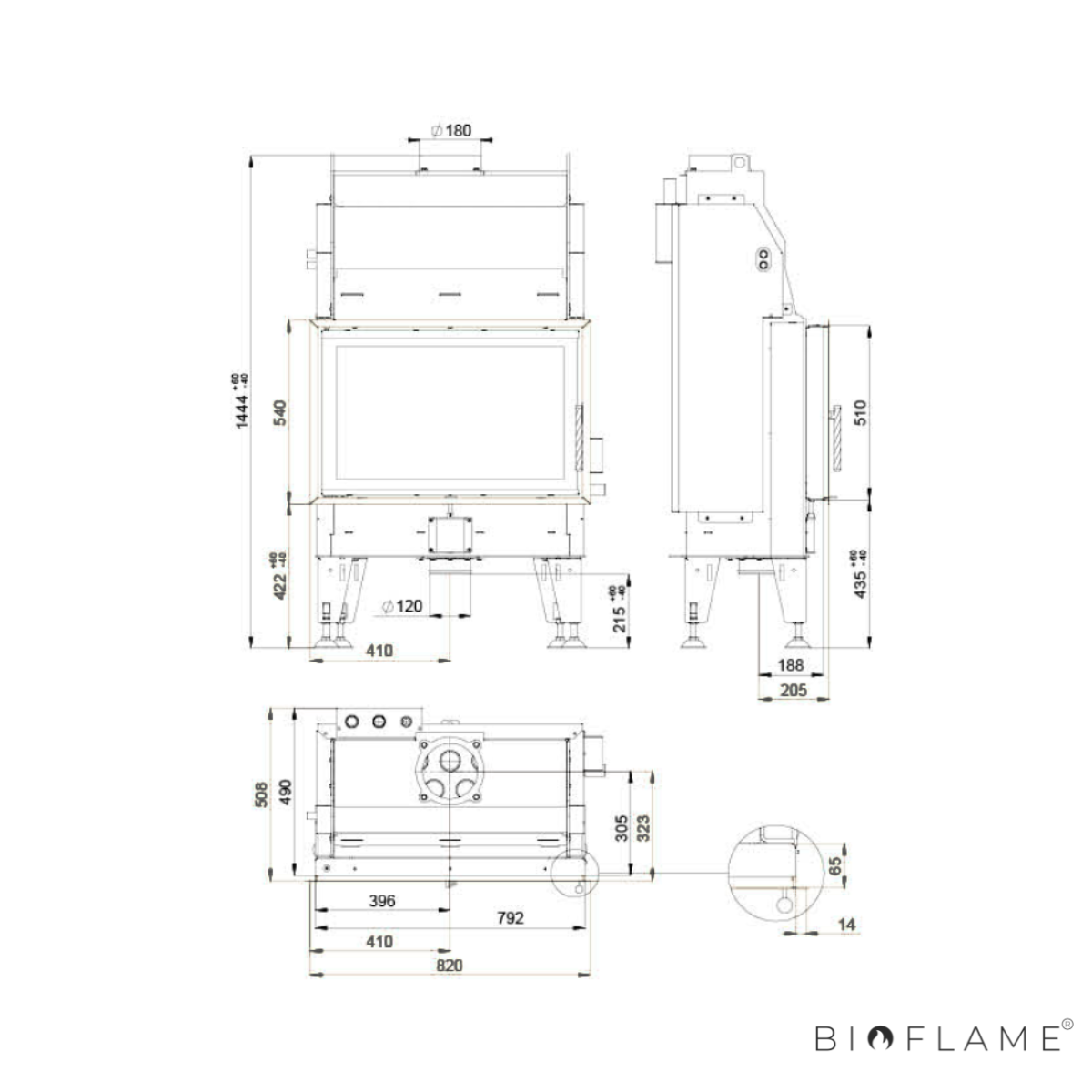 A BeF Aquático WH 80 é uma lareira hidro robusta e potente, com 14,5 kW de potência nominal, dos quais 10 kW são transferidos para o aquecimento central. O revestimento em Carcon assegura alta eficiência (84%), combustão limpa e excelente acumulação de calor. Conta com vidro duplo e porta de abertura lateral com puxador em couro legítimo, aliando estética e durabilidade. Dispõe de entrada de ar externo, compatível com regulação eletrónica da combustão, e controlo simples por um único regulador. Permite o uso de toros de lenha até 50 cm, sendo ideal para aquecer grandes áreas e a água da habitação de forma eficaz.