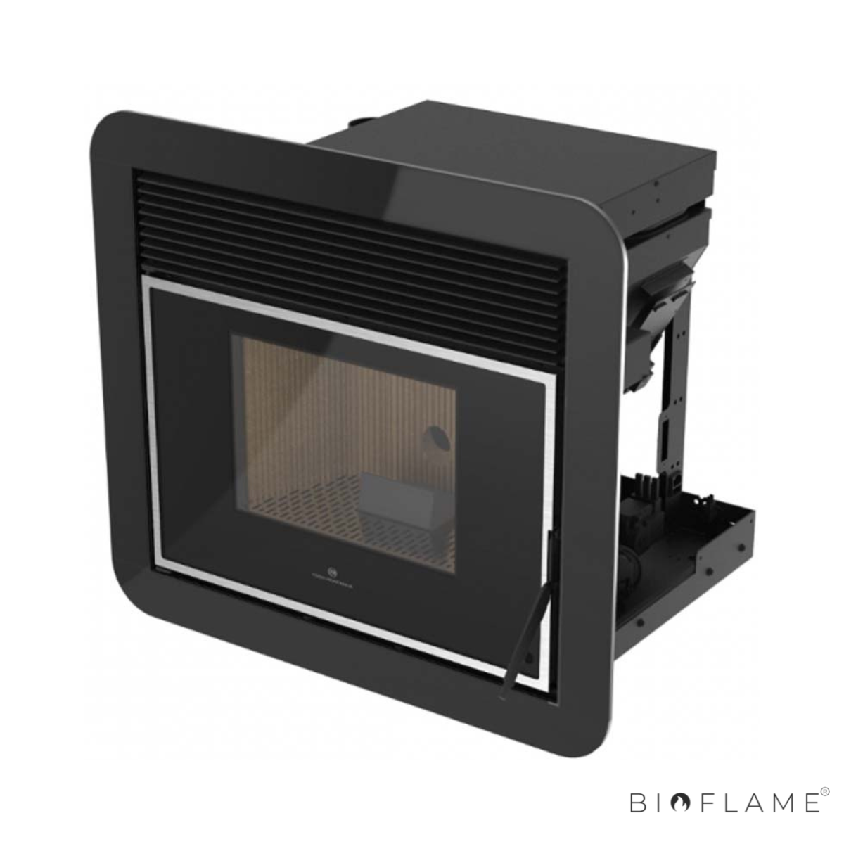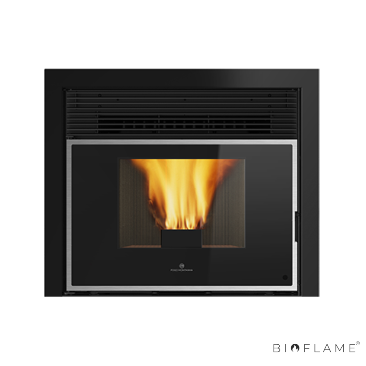 Os recuperadores a pellets Square da Fogo Montanha vêm de fábrica com o aro em cinza. No entanto, é possível optar pelo aro em preto, conferindo ao aparelho um acabamento mais moderno e elegante, ideal para se integrar em ambientes contemporâneos.