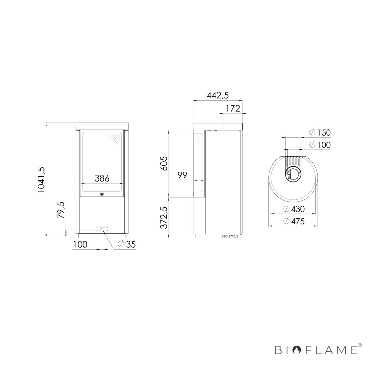 - Dimensões (L x A x P): 475 x 475 x 1042 mm