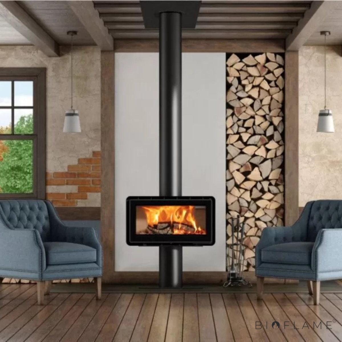A Hayra 85 é uma salamandra a lenha de alto desempenho, com classe energética A+, ideal para aquecer até 350 m³ com conforto e eficiência. Com 8,9 kW de potência e um rendimento de 83%, garante um aquecimento eficaz com consumo moderado de 2,3 kg/h. A sua estrutura robusta e as dimensões generosas tornam-na perfeita para salas grandes ou espaços amplos. Com saída de fumos de 200 mm, está preparada para uma instalação segura e eficaz. Uma solução prática, duradoura e elegante, pensada para quem valoriza qualidade, potência e design funcional.