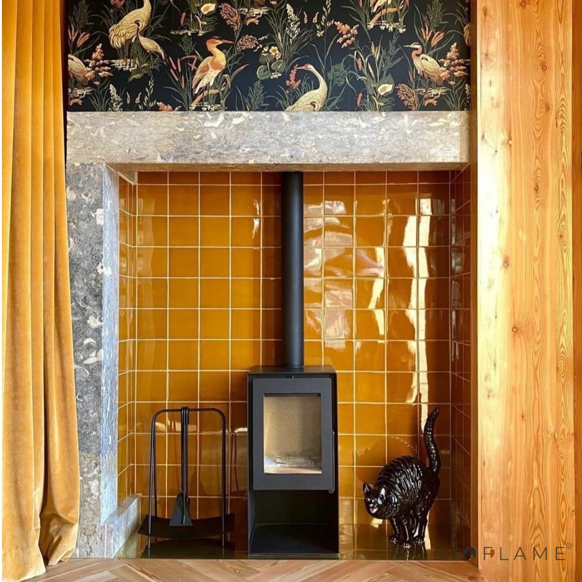 As chapas decorativas para salamandras protegem o chão e a parede do...