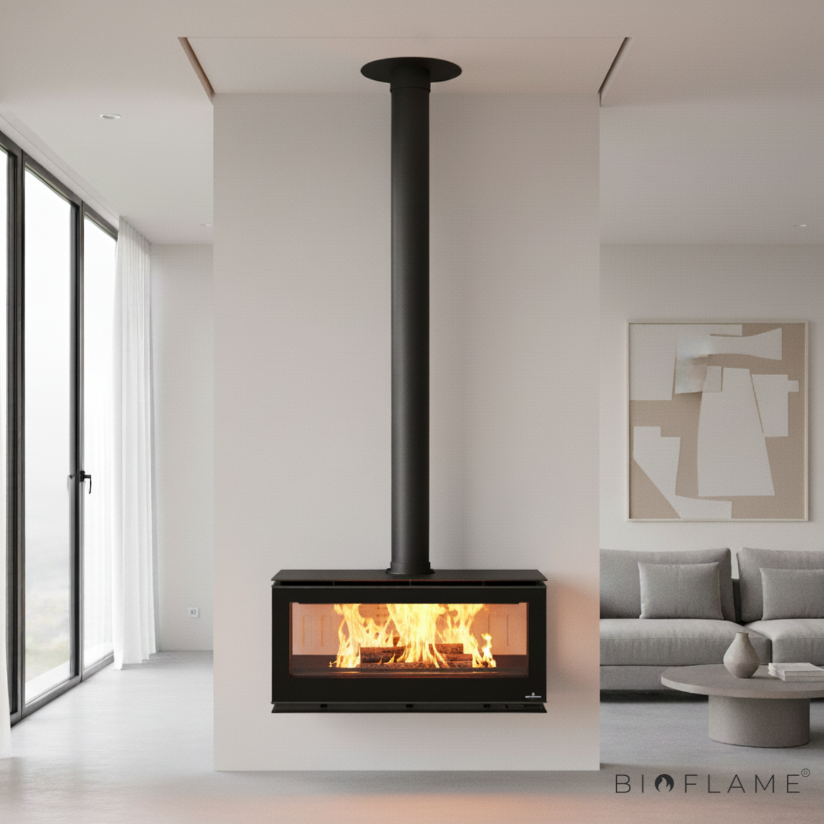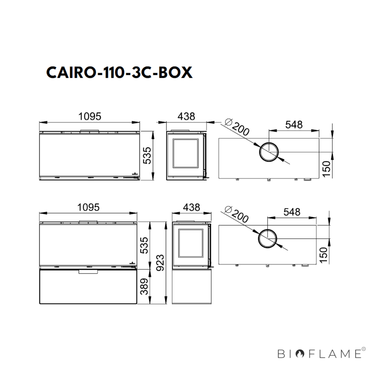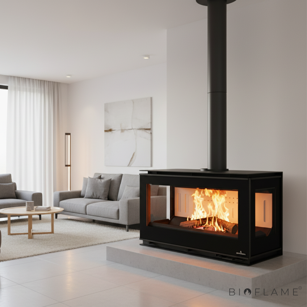 A Cairo 110 Box 3 Faces é a combinação perfeita entre design moderno, potência e funcionalidade. Com 13 kW de potência nominal, rendimento de 81% e capacidade para aquecer até 325 m³, assegura um aquecimento eficiente e económico. O seu formato com três vidros panorâmicos garante uma visão completa da chama, criando um ambiente acolhedor e sofisticado. Na versão com base lenheiro, alia estética e praticidade, permitindo armazenar a lenha de forma organizada e sempre à mão, tornando-a uma solução completa para o conforto do lar.