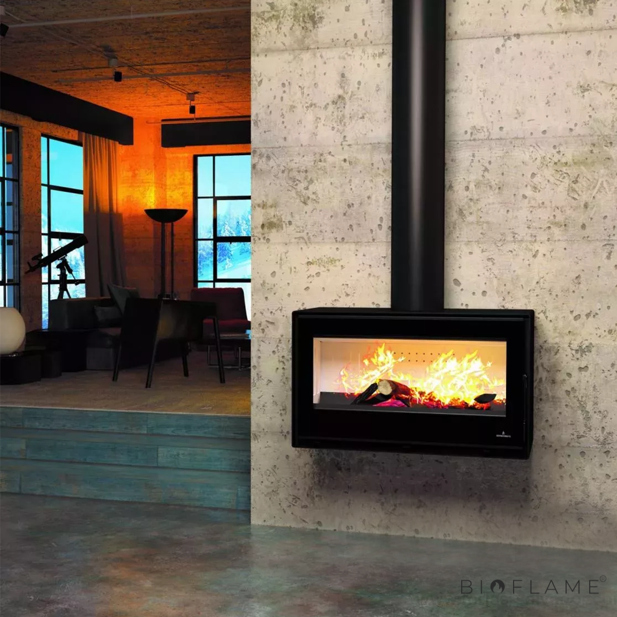 A Cairo 90 Box é uma salamandra a lenha de alto desempenho, com design moderno e construção em ferro fundido e aço, ideal para aquecer até 325 m³, com potência de 16 kW e rendimento de 81%. Tem sistema de dupla combustão e cristal limpo, garante eficiência e uma visão clara da chama. Inclui ventilador para melhor distribuição de calor. Disponível disponível para ficar suspensa fixa à parede, adapta-se facilmente a diferentes espaços. Uma solução premium que alia qualidade, durabilidade e excelente preço.