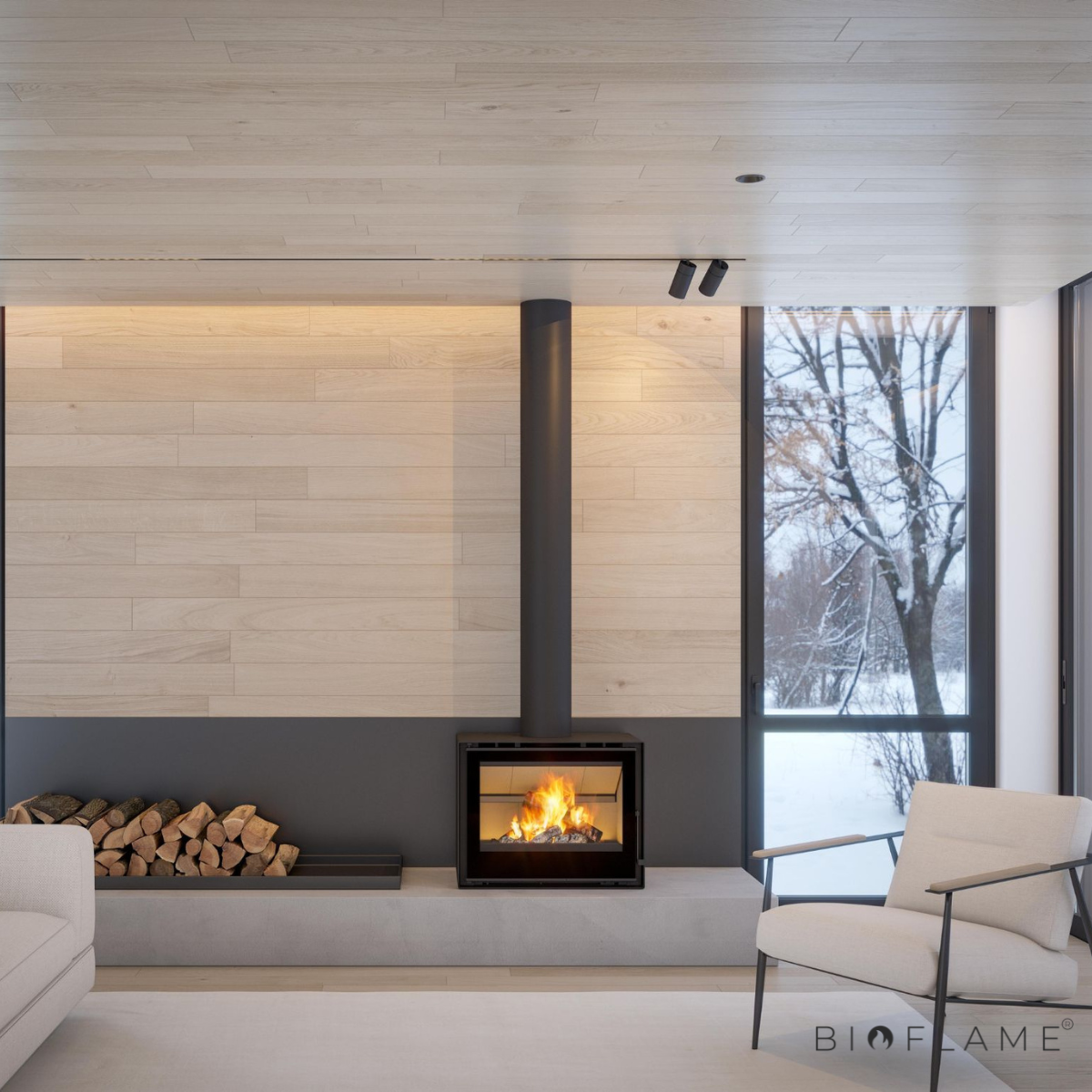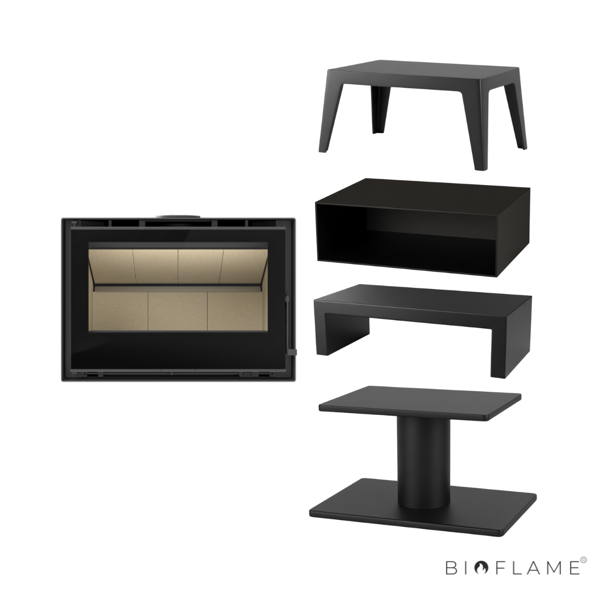 - Base standard – Base com a largura exata da salamandra, que também funciona como lenheiro, unindo praticidade e estilo num único elemento.