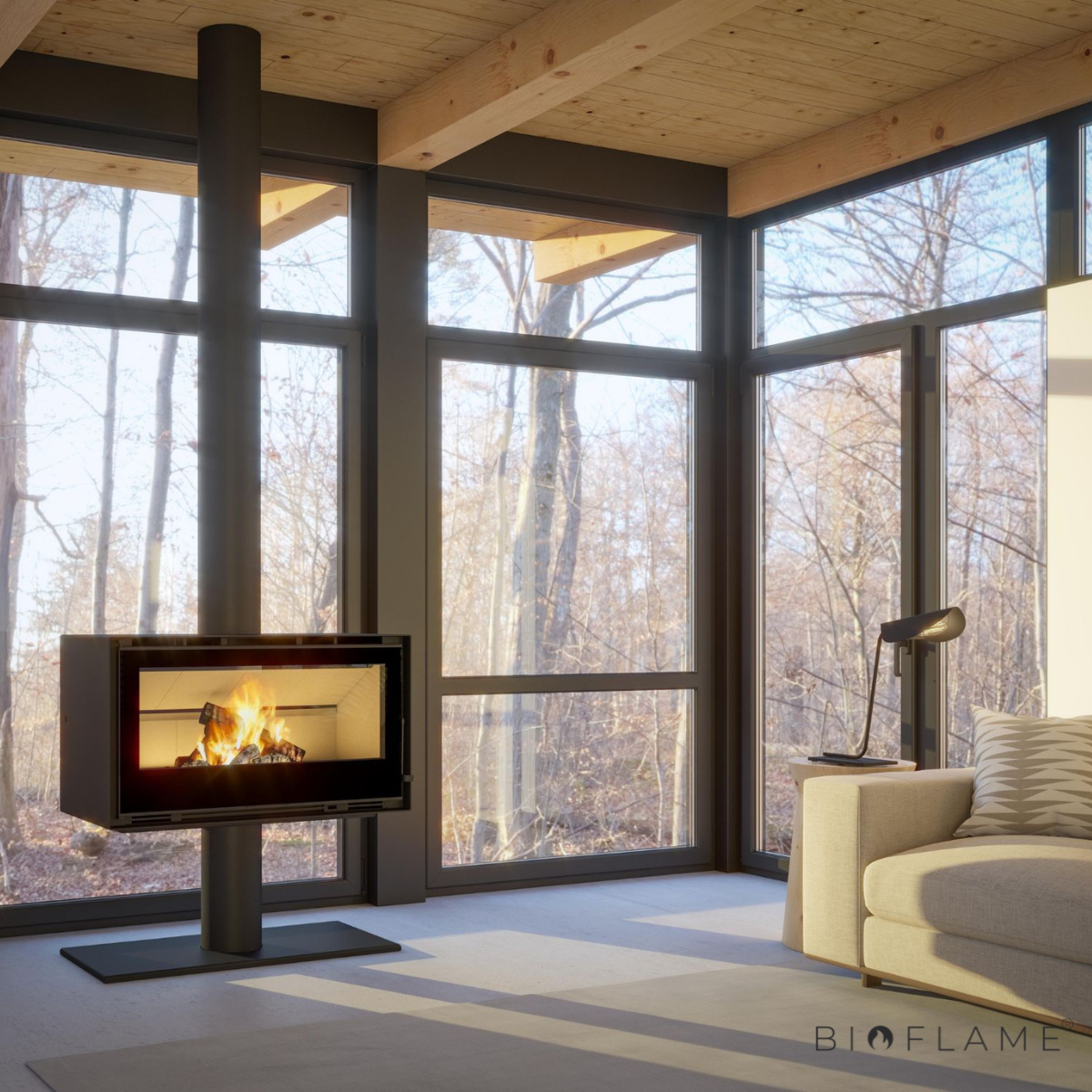 - Kit de suspensão – Permite ter a salamandra suspensa, fixa à parede, criando um efeito moderno e elegante, perfeito para espaços contemporâneos.
