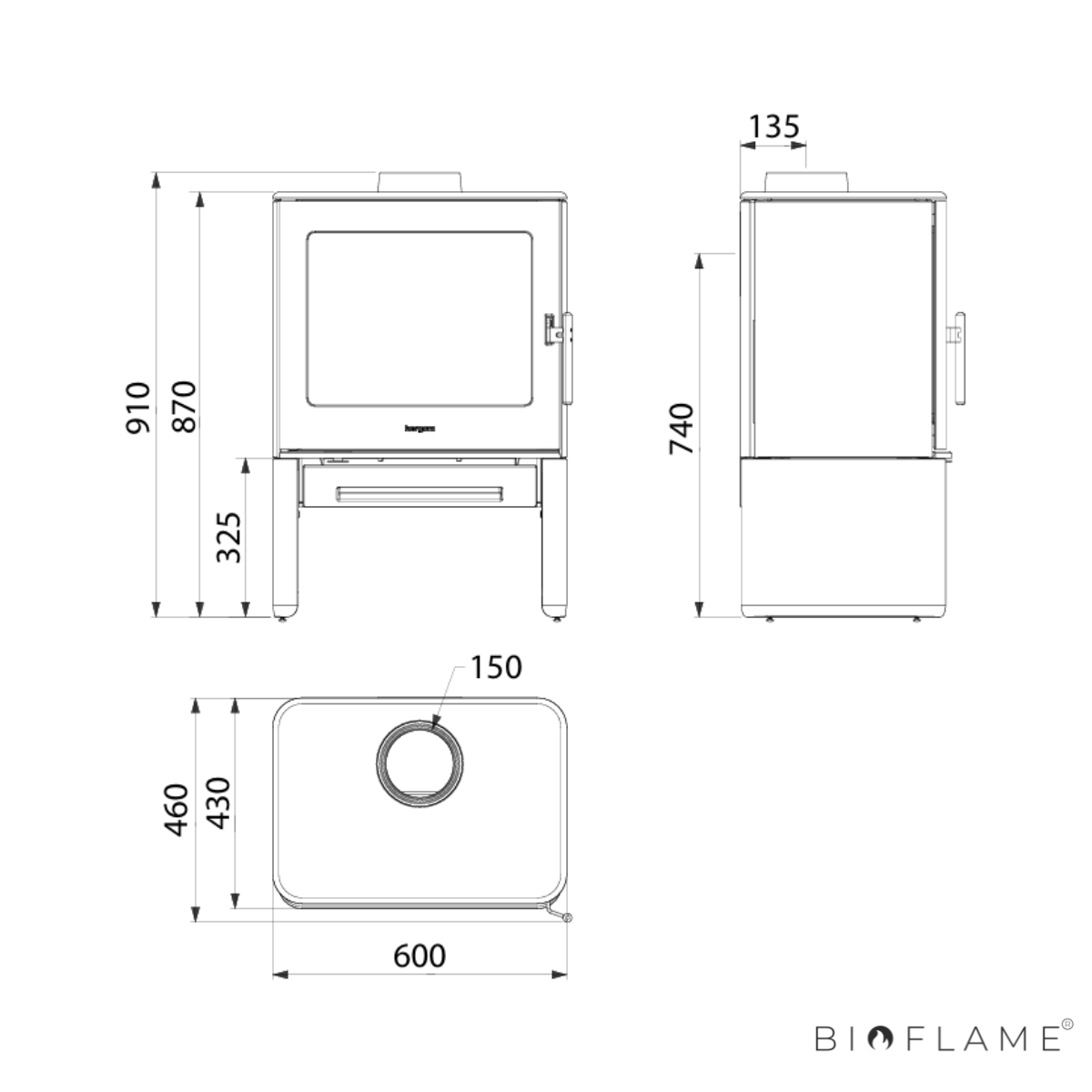 - Diâmetro Saída Fumo: 150 mm