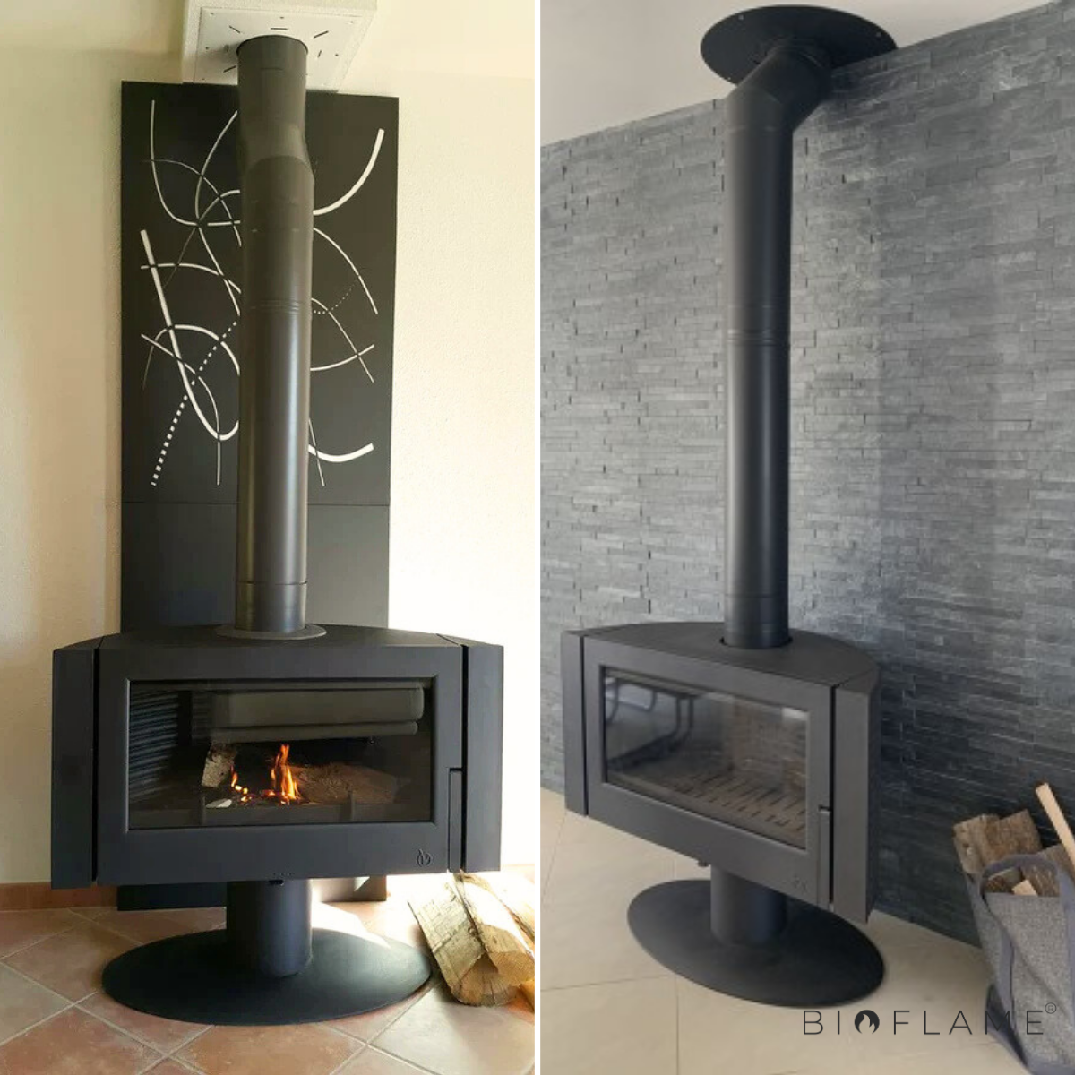 As chapas decorativas para salamandras protegem o chão e a parede do...