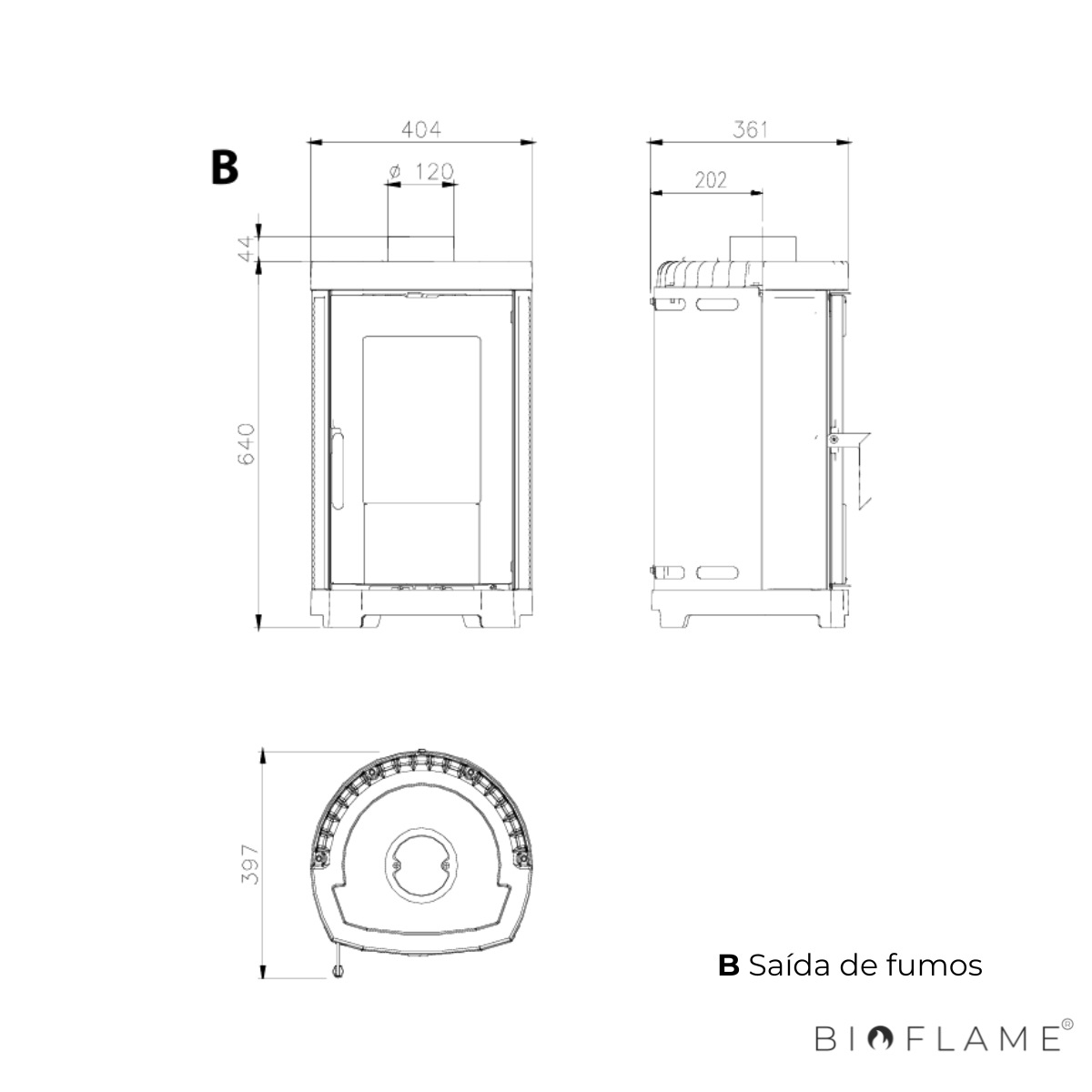 - Diâmetro Saída Fumo: 120 mm