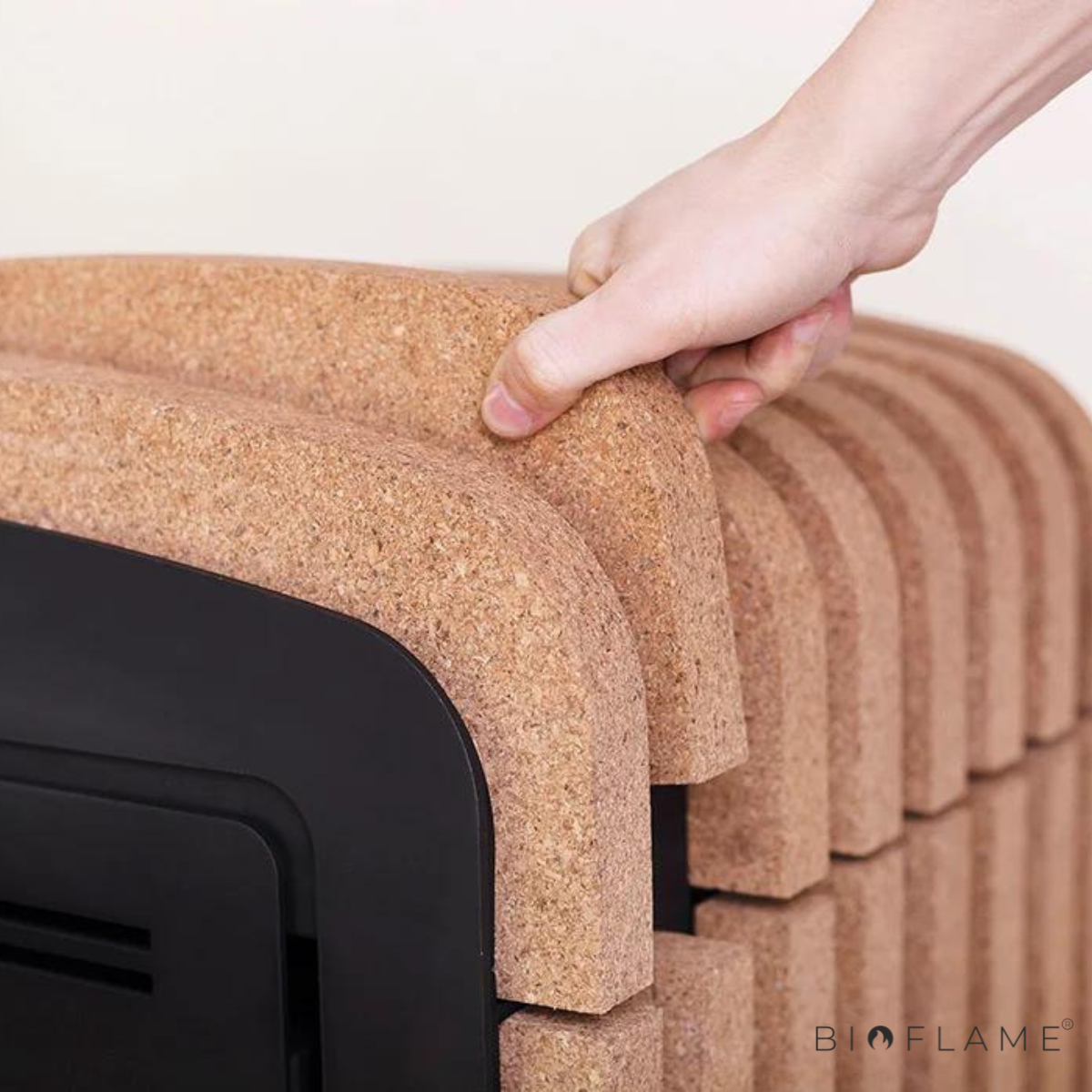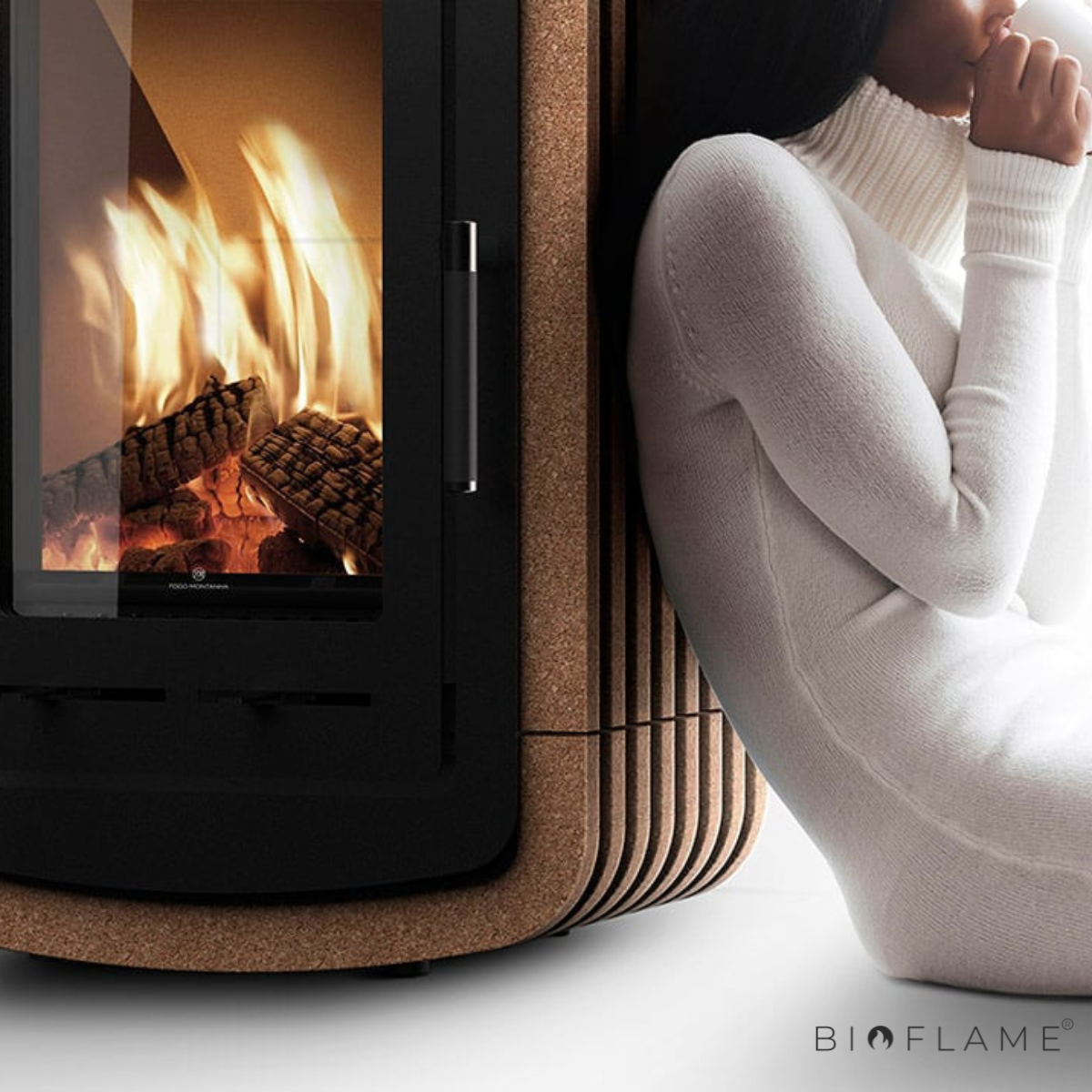 A Salamandra a Lenha Fogo Montanha Natura S500H combina design moderno, eficiência energética e um toque original com o seu revestimento em cortiça (natural ou escurecida). Com 7,3 kW de potência e elevado rendimento, é ideal para quem procura um aquecimento limpo, duradouro e visualmente distinto. O sistema de vidro limpo, a ligação para ar exterior e os materiais de elevada resistência térmica garantem conforto, eficiência e baixas emissões. Uma escolha premium e ecológica para aquecer a sua casa com estilo.