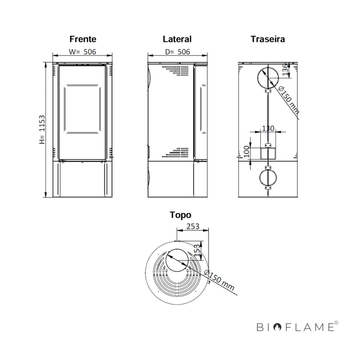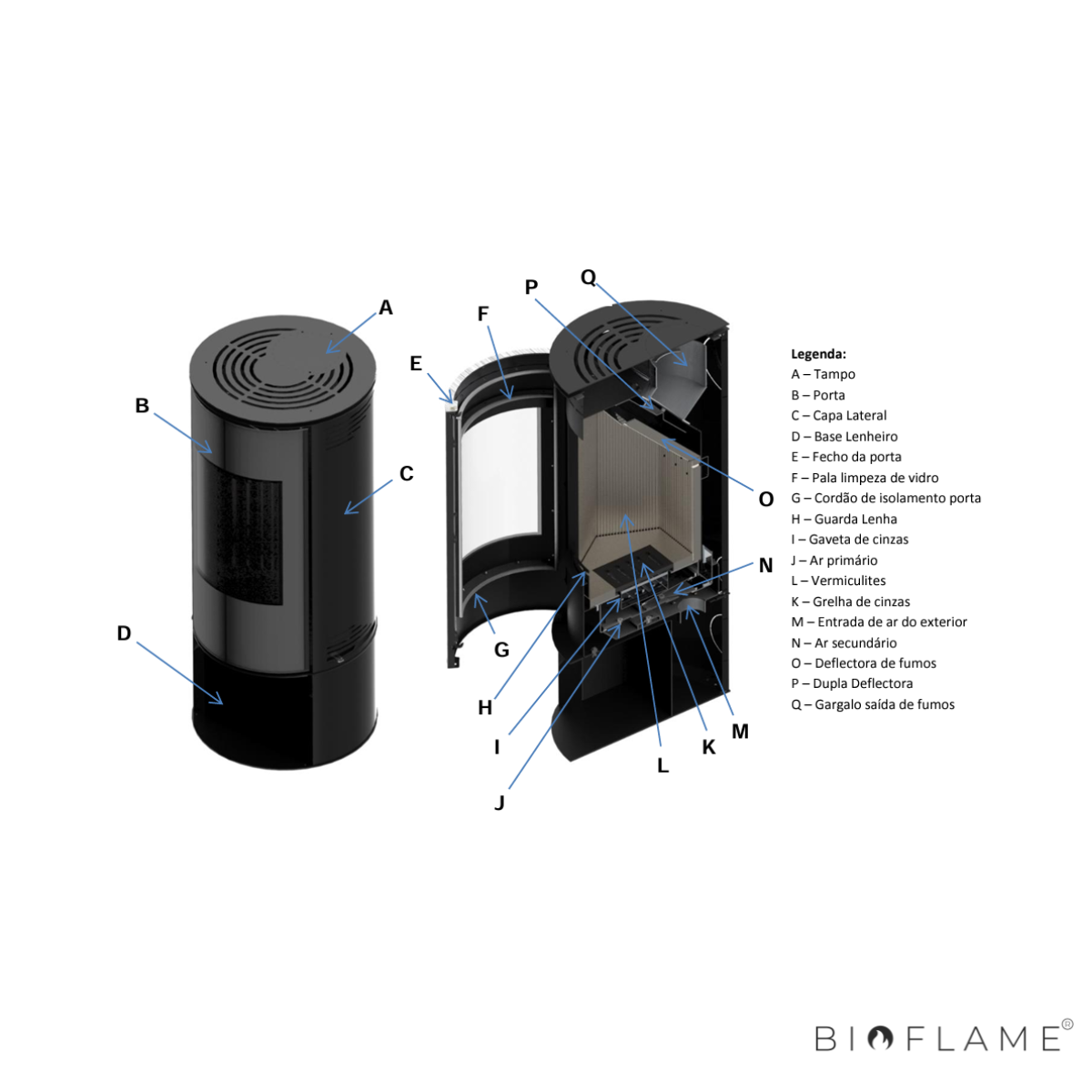 - Opcionais: Porta para o lenheiro, Tampa de Pedra