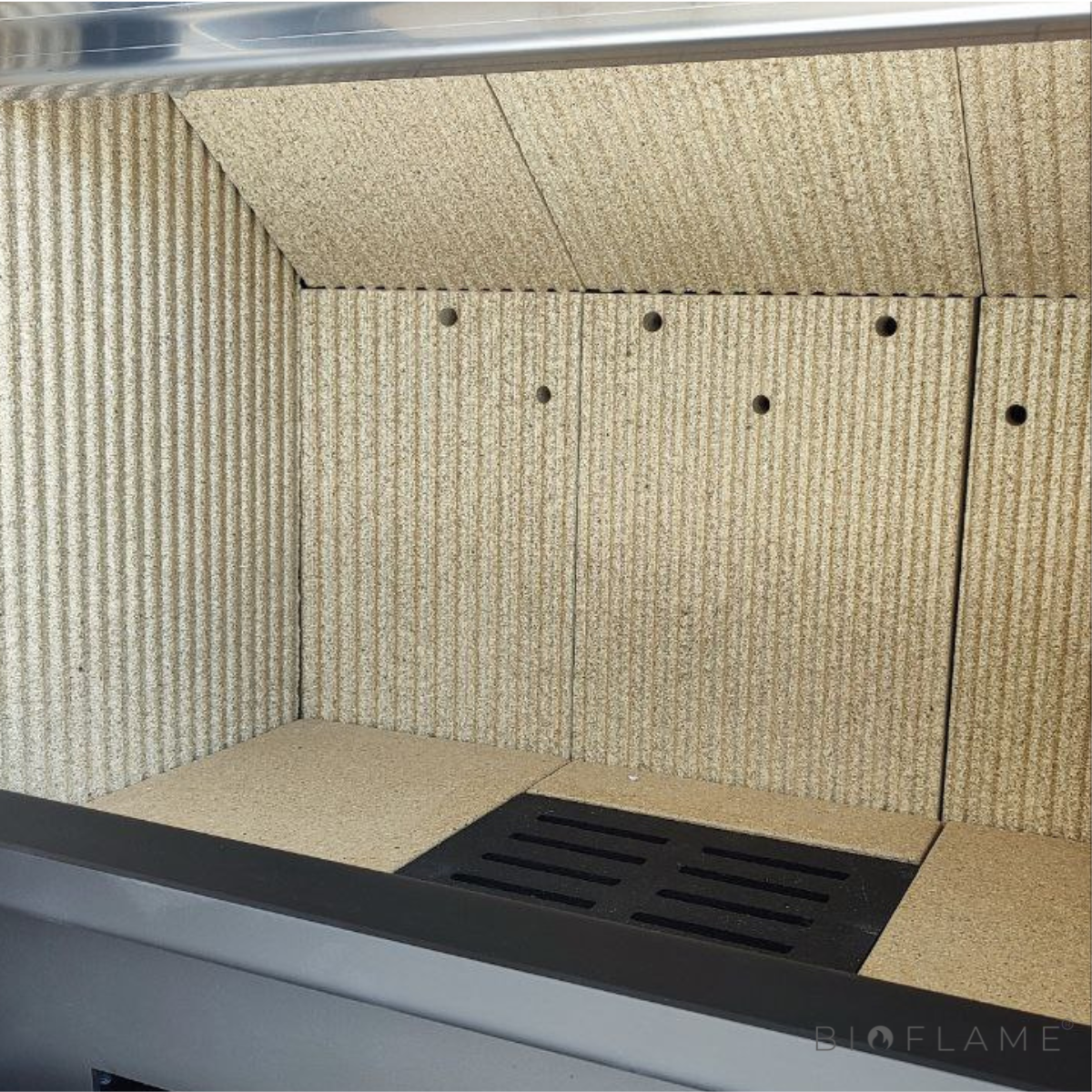 Construída com interior em vermiculite e grelha em fundição, esta salamandra assegura durabilidade e desempenho térmico superiores. Com controlo de ar ajustável, puxador de mão fria e 3 anos de garantia, é uma escolha inteligente e elegante para aquecer salas de estar, escritórios ou zonas comuns de média e grande dimensão.