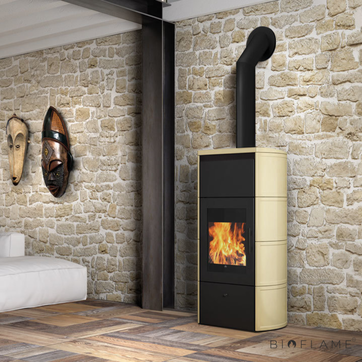 SALAMANDRA A LENHA PARA AQUECIMENTO CENTRAL - EDILKAMIN FLAMMA 14 CERÂMICA
