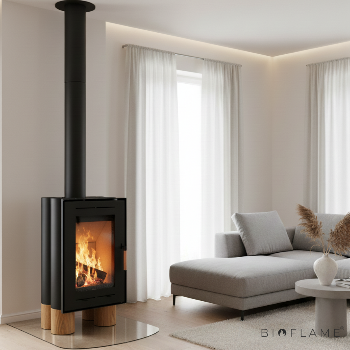 A dupla combustão garante uma combustão perfeita e uma chama bonita, que vai adorar ter na sua sala. O ar utilizado para queimar a lenha é totalmente controlado e injetado nas zonas onde necessita dele e quando necessita dele.