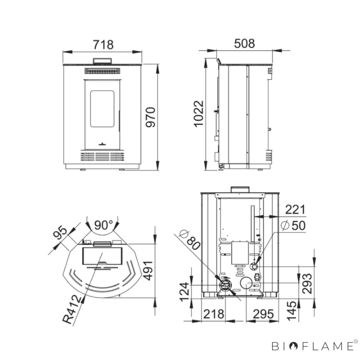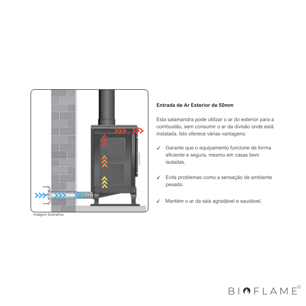 - Características: Sistema de vidro limpo, Fácil Manutenção, sistema de dupla combustão, Programável, Sistema de Regulação, Wifi, T em aço inoxidável, Válvula de sobrepressão da câmara, Puxador com sistema de bloqueio, Acumulador térmico em fundição, Silenciosa.